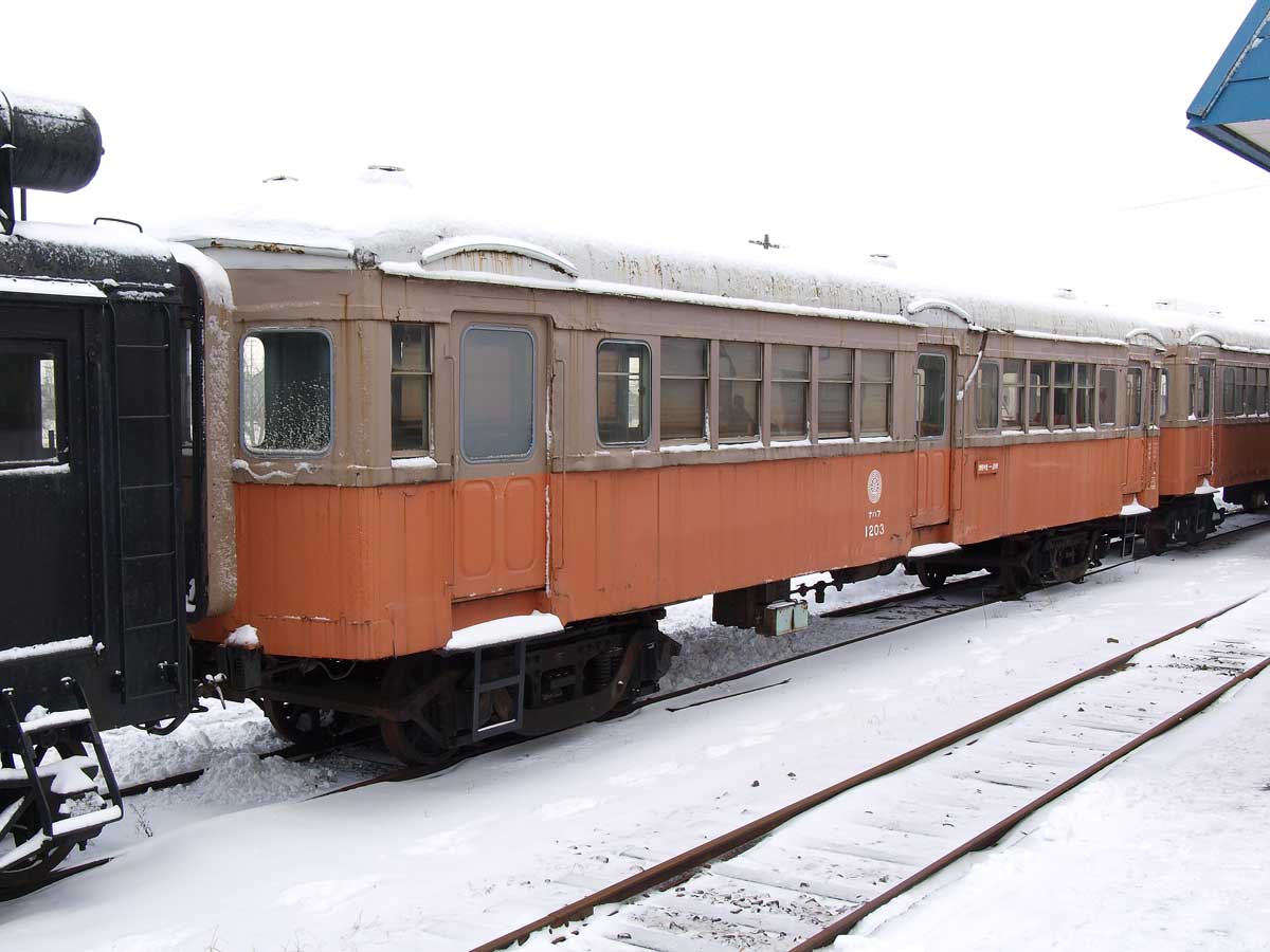 : 1928년에 가와사키 조선소에서 제조된 구 세이부 철도 151계이다. 1965년 7월에 양도된 1157・1155・1158의 3량을 운전대 철거 후 롱시트 상태로 객차화했다. 난방은 달마 난로가 아닌 웨바스토식 난방 장치를 설치했다. 주로 기동차에 견인되었지만, 수송량 감소로 사용 빈도가 줄어 1995년에 1201이 폐차되었고, 이후 쓰가루 고쇼가와라역에서 창고로 사용되고 있다. 2016년 현재는 1202・1203이 보류차로 되어 있다.
