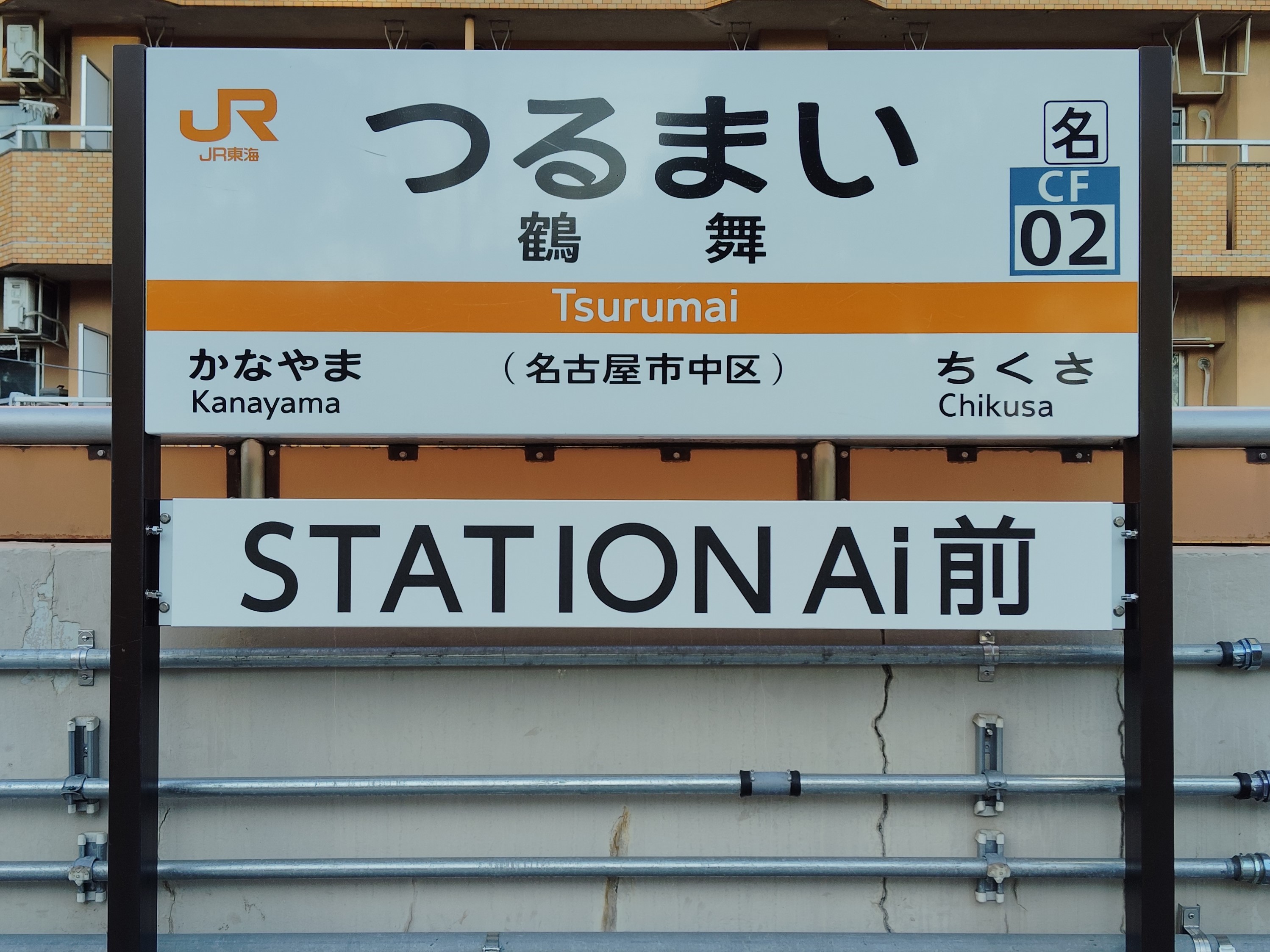 JR鶴舞駅、副駅名標に「STATION Ai前」 乗客誘致めざす