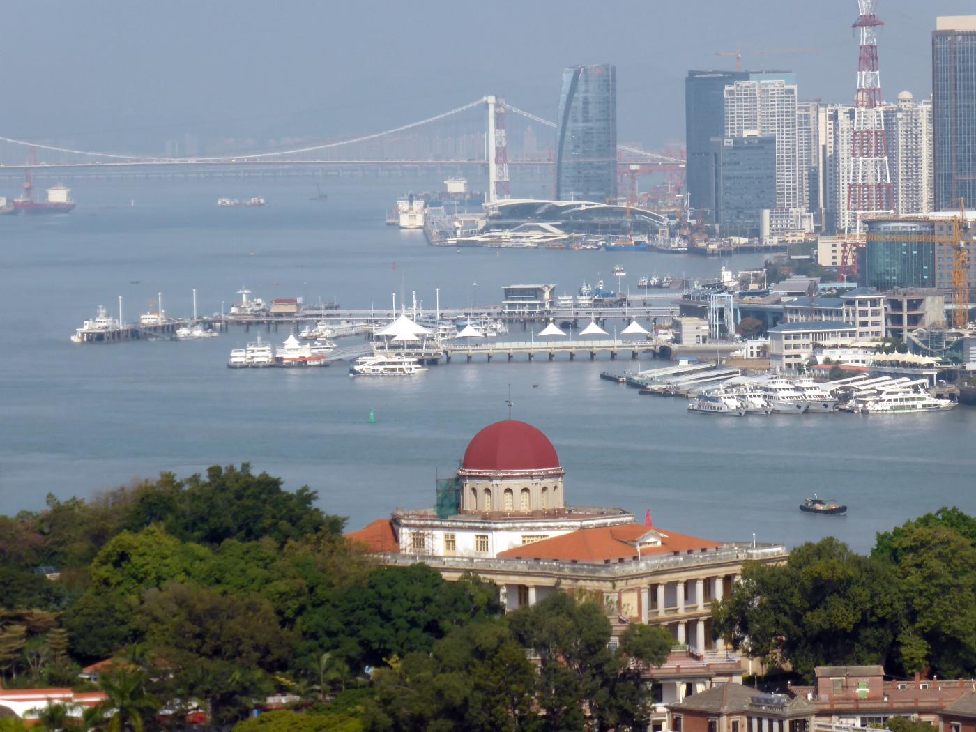 - 제1부두 여객 터미널 - 맞은편 하이창구의 쑹위 부두와 항로가 있다.