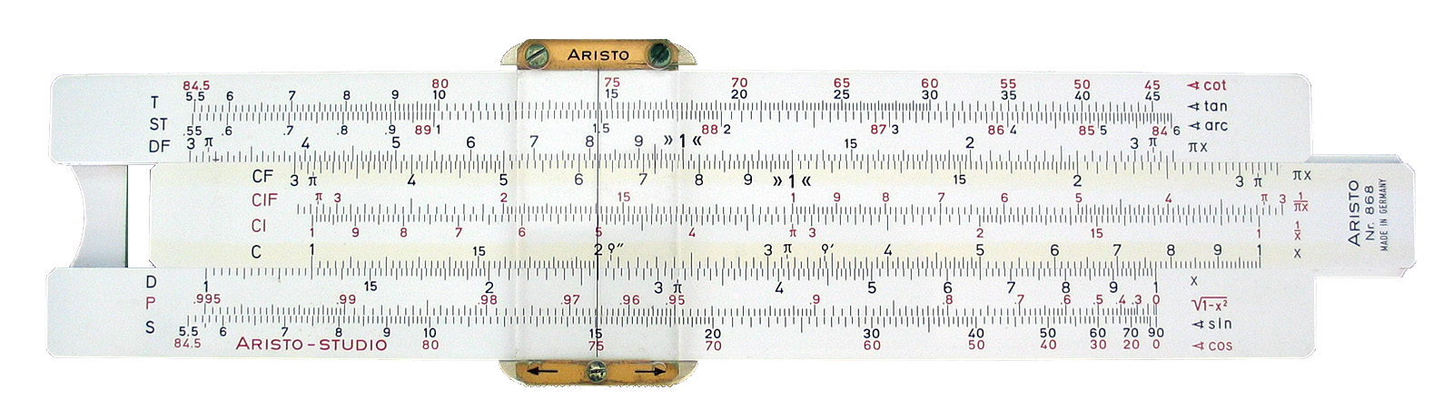 슬라이드 규칙은 로그 개념이 발표된 직후인 1620년에서 1630년 사이에 발명되었다. 곱셈과 나눗셈을 수행하는 수동 아날로그 컴퓨터이며, 초월 함수(예: 로그와 지수, 원형 및 쌍곡선 삼각법) 및 기타 함수를 제공하는 추가 눈금이 제공되기도 했다.