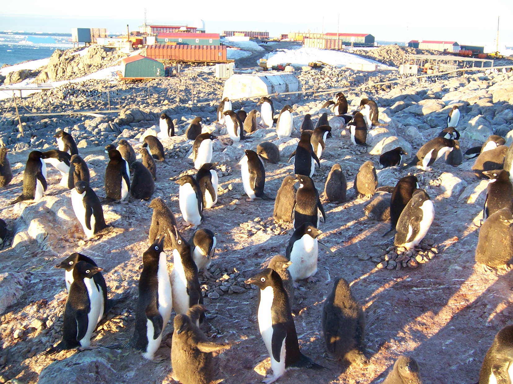 뒤몽 뒤르빌 기지는 남극 Base antarctique Dumont-d'Urville|뒤몽 뒤르빌 기지프랑스어에 위치한 프랑스 연구 기지이다. 연중 운영되며, 여름철에는 최대 120명, 겨울철에는 약 30명이 거주한다.[5] 기지 규모는 4815m2이다.[11] 1956년 1월 12일, 1957-58년 국제 지구 물리 관측년을 위해 건설되었다.[11] 초기에는 임시 기지로 계획되었으나, 이후 확장되어 지속적으로 운영되고 있다.[11] 본토에서 5km 떨어진 페트렐 섬에 위치해 있으며, 생태학, 해양 생물학, 빙하학, 기상학 등 다양한 연구를 수행한다.[11] 2005년 다큐멘터리 영화 ''황제펭귄''의 주요 촬영 장소이기도 하다.[12]