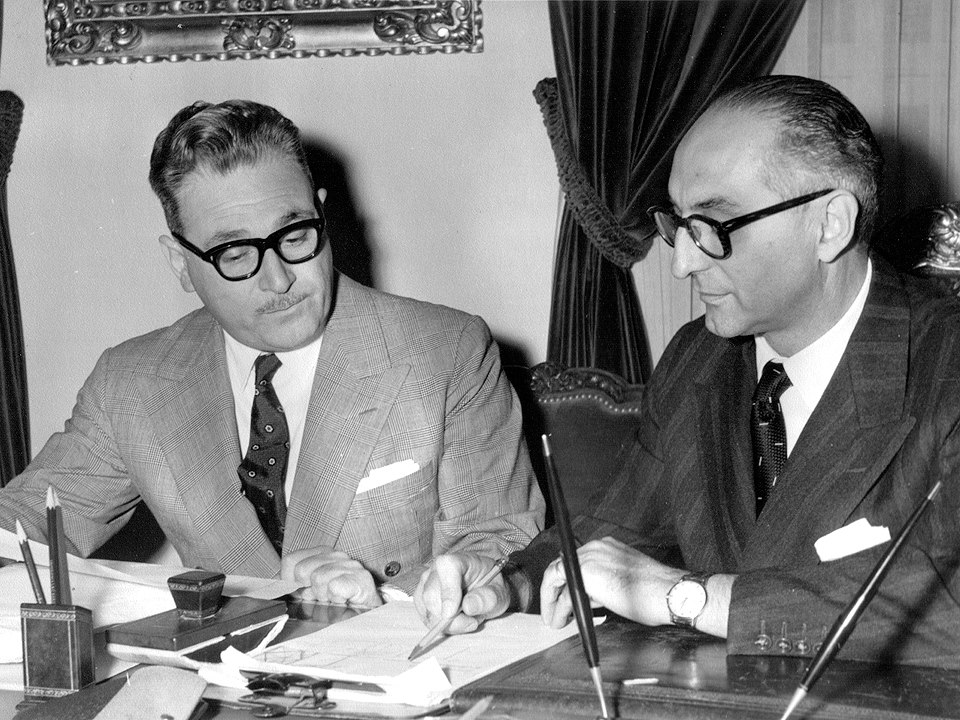 아르투로 프론디지 대통령과 로헬리오 프리제리오 비서관, 라 킨타 데 올리보스, 1958년.