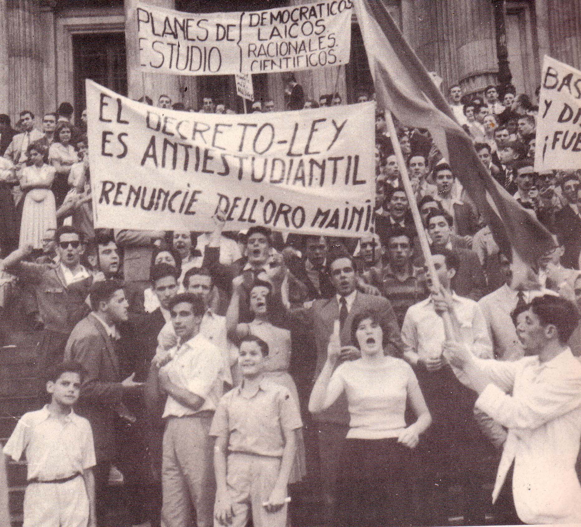 1918년 대학교 개혁 이후, 아르헨티나의 교육, 특히 대학교 수준의 교육은 정부와 가톨릭 교회로부터 더욱 독립하게 되었다.[9] 페론 정권 시절 교회는 교리 문답이 공립학교에 다시 도입되고, 교구 기관들이 보조금을 받기 시작하면서 세속적인 교육 시스템에 다시 등장했다.[9] 그러나 1954년 정책의 갑작스러운 변화는 페론의 전복을 초래했고, 이후 그의 친교회 정책은 아람부루에 의해 복원되었다.[9]