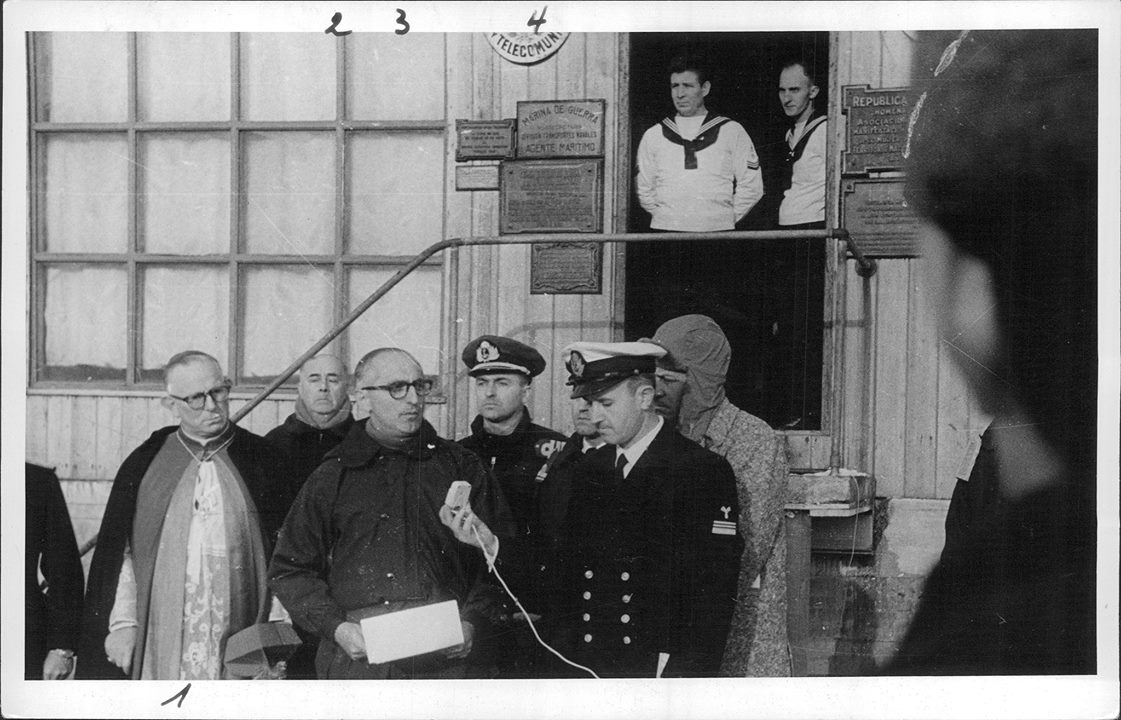 디셉션 섬에서 아르투로 프론디시 대통령이 라디오로 방송되는 연설을 하고 있다.