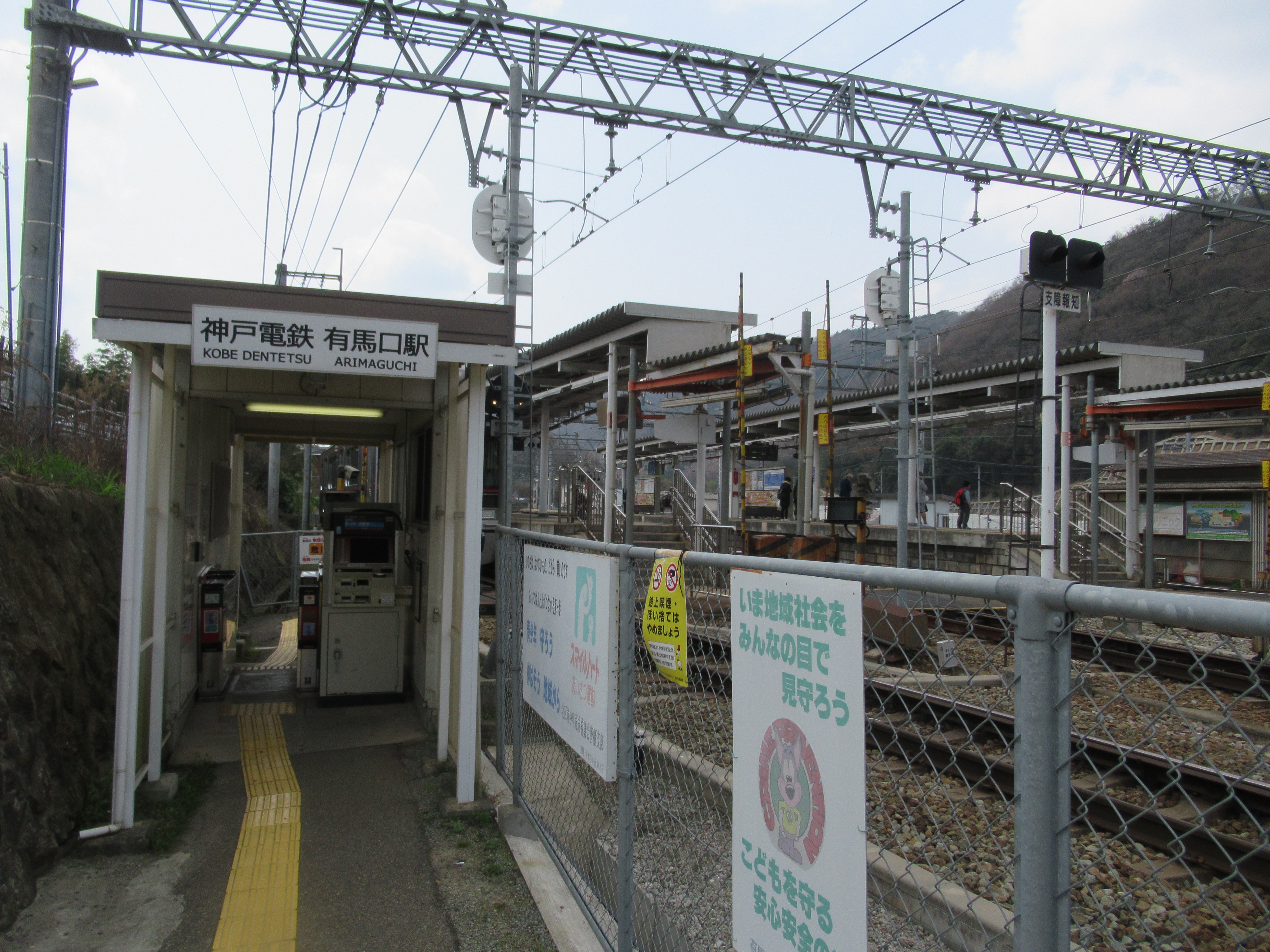 2006년 1월 22일, 아리마구치역 구내에서 상행 회송 열차가 탈선하는 사고가 발생했다. 고베 전철은 명확한 원인 규명 없이 운전을 재개했고, 진입 속도를 시속 15km까지 낮추는 조치를 취했음에도 불구하고, 같은 해 2월 3일에 다시 하행 보통 열차가 같은 장소에서 탈선했다. 두 사고 모두 사상자는 발생하지 않았지만, 사태의 심각성을 인지한 국토교통성 긴키 운수국은 보안 감사를 실시하고 고베 전철에 개선 권고를 내렸다.[3]초기에는 역 구내 레일의 심한 마모와 첫 번째 사고 차량의 차륜 정비 불량이 원인으로 지목되었다. 그러나 2007년 9월 28일 국토교통성 항공·철도 사고 조사 위원회는 다른 원인을 발표했다. 보고서에 따르면, 고베 전철이 공사 비용 문제로 교체하지 않고 남겨둔 구식 37 kg 분기기(다이쇼 14년형)가 새로 설치된 50 kg 레일보다 7mm 높게 솟아 있었고, 마침 탈선한 차량이 차륜 정비를 마친 직후라 마찰력이 증가한 것이 복합적으로 작용한 결과였다.