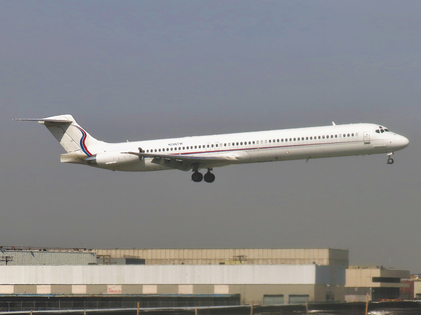 아메리스타 제트 차터 MD-83이 존 F. 케네디 국제공항에 접근하는 모습. 이 사진이 찍힌 지 거의 1년 후, 해당 항공기는 윌로우 런 공항에서 활주로 이탈 사고로 심각하게 손상되었다.