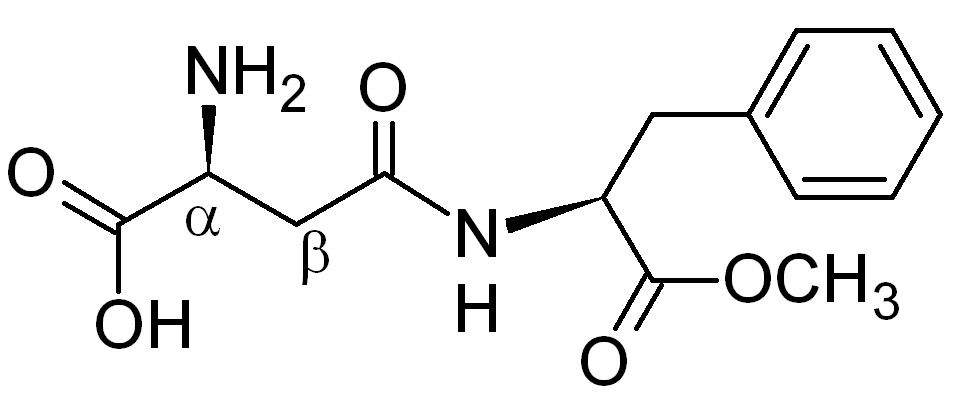 아스파탐은 아스파르트산과 페닐알라닌이라는 두 가지 아미노산을 결합한 다이펩타이드이다.[233] 아스파르트산과 페닐알라닌이 특정 방식으로 결합하여 아스파탐을 형성하면 강한 단맛을 가진 물질이 생성된다.[127] 탄수화물이 아니므로 혈당을 올리지 않으며, 혈당 지수는 0이다.[103][107][108] 아미노산을 주성분으로 하기 때문에, 뮤탄스균의 영양원이 되지 않아, 충치의 원인이 되지 않는다.[233]