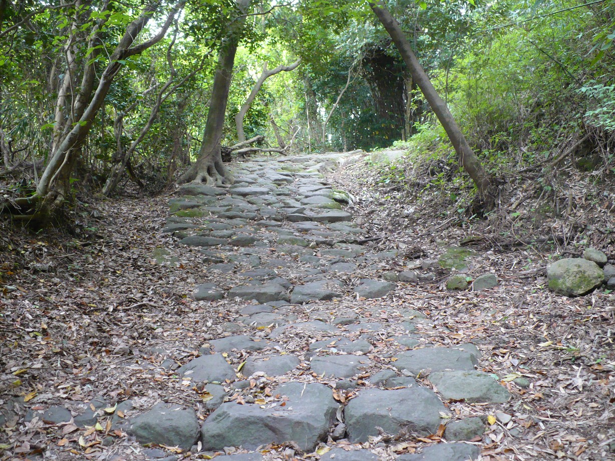 : 절벽 아래 국도 10호가 메이지 시대에 개통되기 전까지 주요 교통로였던 언덕길이다.