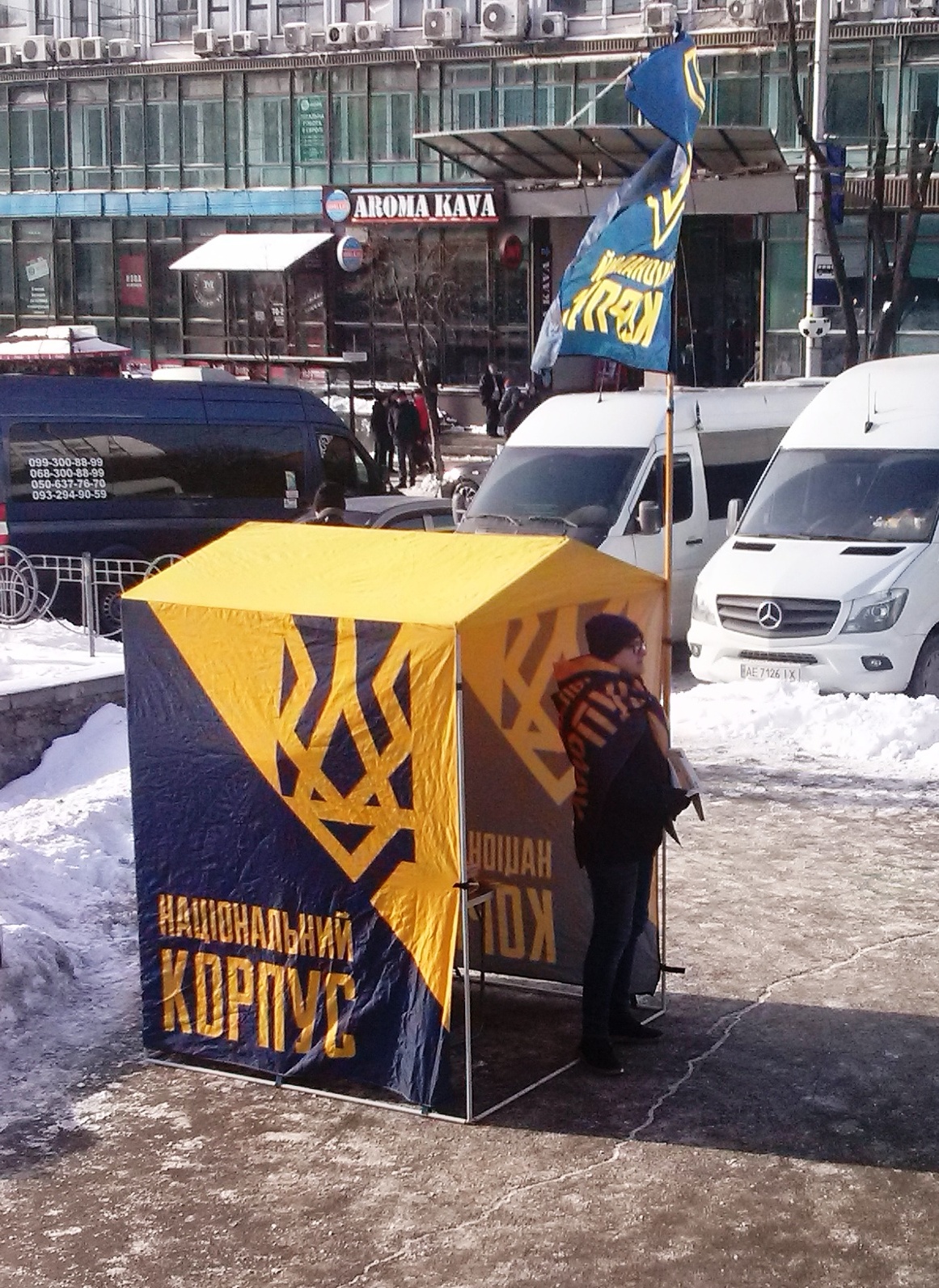 그러나 다른 전문가들은 이러한 평가에 동의하지 않는다. 벨링캣의 올렉시 쿠즈멘코는 연대 군인들이 국민군단 정치 정당 지도자들과 함께 등장했고, 2017년 유튜브 비디오에서 러시아 출신 네오 나치 망명자 알렉세이 레브킨이 연대에게 강의를 하는 모습이 나타났다고 지적했다.[201]