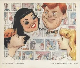 라디오에서는 1940년대 초부터 ''아치 앤드루스''라는 프로그램으로 방송되었다. NBC 블루 네트워크에서 시작하여 뮤추얼을 거쳐 NBC 라디오에서 1953년까지 방송되었으며,[8] 찰스 뮬렌, 잭 그라임스, 버트 보야르, 밥 헤이스팅스 등이 아치 역을 맡았다.[8]