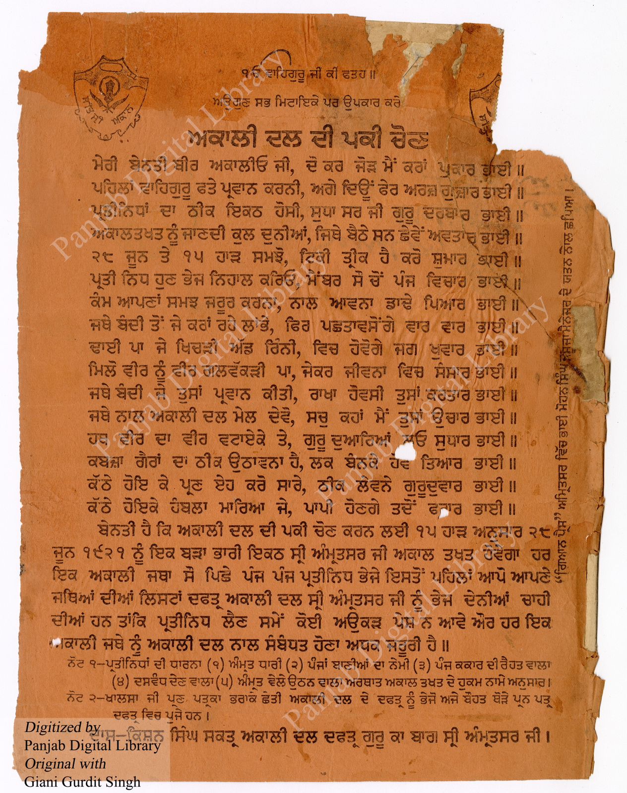 1937년 인도 주 선거에서 아칼리 달은 10석을 획득하여 야당으로 활동했다. 당시 칼사 국민당(Khalsa Nationalists)은 11석을 얻어 유니오니스트 당 지도자 시칸다르 하얏 칸(Sikander Hyat Khan)이 이끄는 연립 정부에 참여했다. 아칼리 달은 무슬림 연맹과의 협력을 모색하기도 했으나 별다른 성과를 거두지 못했다.