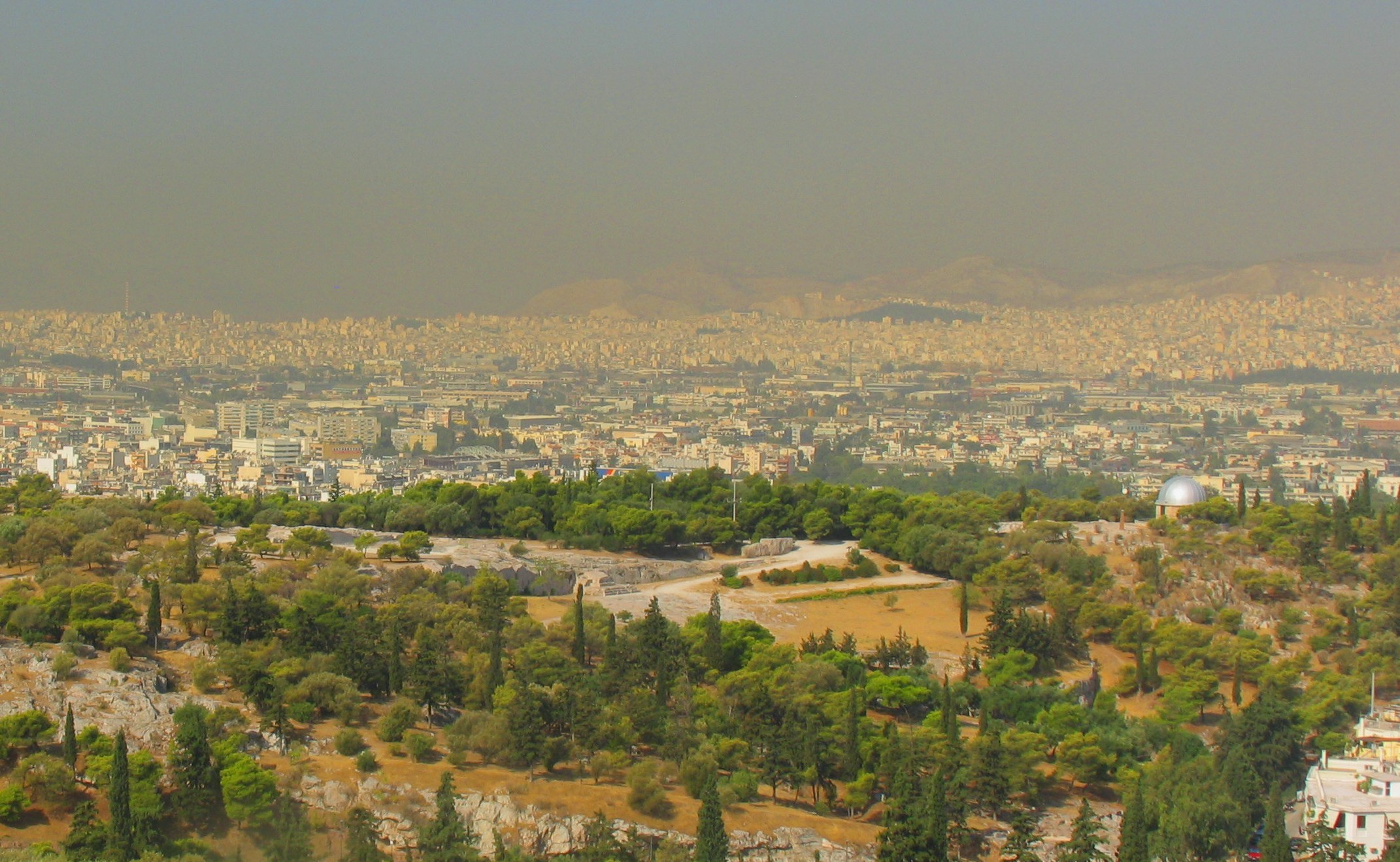 1990년대 그리스 당국은 아티키 분지의 대기 상태를 개선하기 위해 광범위한 조치를 취했다. 그러나 공해는 여전히 아테네의 문제로 남아 있으며, 특히 여름철 더운 날에는 더욱 심각하다. 2007년 6월 말, 아티키 지역에 큰 산불이 발생하여 파르니타산맥 국립공원의 숲 상당 면적이 불탔으며, 이는 아테네의 연중 대기 상태 유지에 치명적인 영향을 끼친 것으로 여겨져 도시 대기 상태에 대한 우려를 낳았다.[52] 2007년 6월 하순,[222] 아티카 지역에서는 여러 건의 산불[222]이 발생했는데, 그중에는 파르니타 산(Mount Parnitha)[223]의 광대한 삼림 국립공원의 상당 부분을 태운 화재도 포함되어 있다.[223] 파르니타 산은 연중 아테네의 대기 질 개선에 중요한 역할을 한다고 여겨진다.[222]