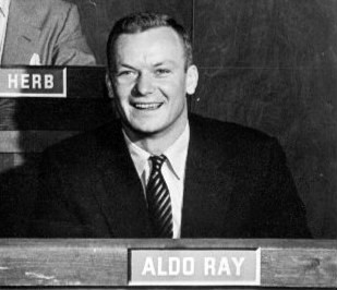 1944년 미국 해군에 입대하여 1946년까지 플로그맨으로 복무하고 제대한 알도 레이는 캘리포니아 대학교 버클리에 입학했으나 곧 중퇴했다. 이후 아내와 함께 캘리포니아 주 크로켓으로 이주하여 경찰()로 근무했다.1950년 4월, 컬럼비아 픽처스는 샌프란시스코에 촬영팀을 보내 제작 중인 영화 ''토요일의 영웅(Saturday's Hero)''(1951)에 출연할 운동선수를 찾았다. 알도의 형제인 귀도 레이는 샌프란시스코 크로니클의 오디션 기사를 보고 동생에게 운전을 부탁했다. 데이비드 밀러 감독은 그의 목소리에 주목했다. 또한, 레이는 정치 경험 덕분에 카메라 앞에서 편안하게 말할 수 있었다.[25] 그는 ''팻과 마이크(Pat and Mike)'' 예고편에서 이 일화를 다시 들려주기도 했다.