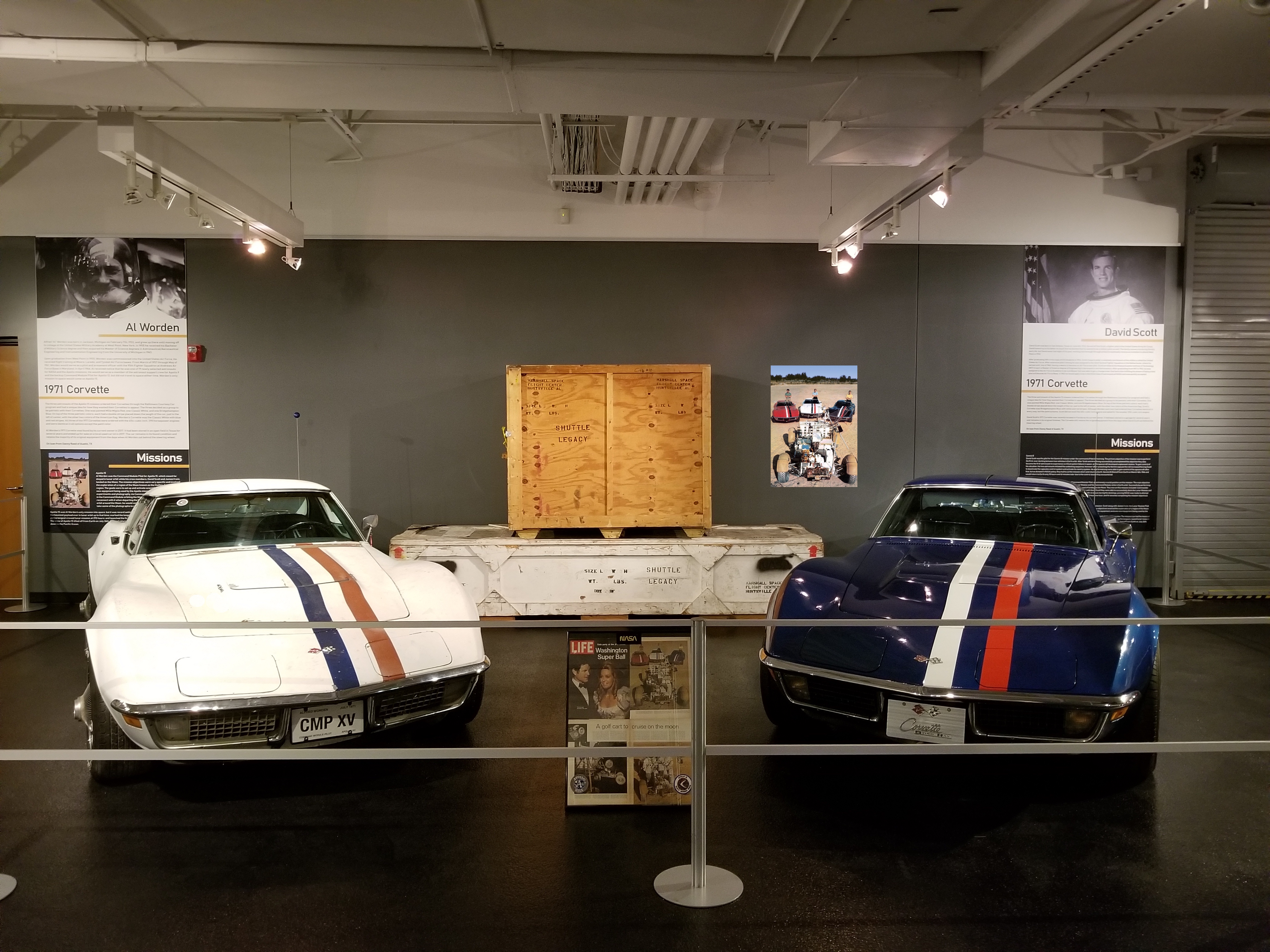 워든은 피트 콘래드가 이끄는 아폴로 12호 주 승무원들이 케네디 우주 센터에서 같은 색상의 검은색과 금색 쉐보레 콜벳을 몰고 다녔다고 회상했다. 반면 예비 승무원은 짐 어윈에게는 빨간색, 워든에게는 흰색, 스콧에게는 파란색 차를 확보하여, 승무원 내에서 개성을 강조했다.