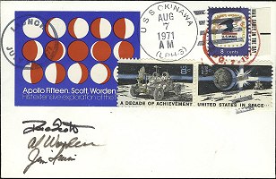 아폴로 15호 임무 이전에, 승무원들은 서독 우표상인 헤르만 지거의 대리인 호르스트 아이어만과, 각 우주비행사에게 약 7000USD를 지급하는 대가로 100장의 우편 엽서를 달에 가져가기로 합의했다. 우주비행사들은 각자 100장씩을 더 추가했지만, 2장이 분실되어 총 398장이 되었다. 이 엽서들은 스콧이 우주복 주머니에 넣어 발사 전에 ''엔데버''호에 실었고, ''팔콘''호로 옮겨져 착륙선 내에서 3일 동안 달 표면에 있었다.[27] 귀환 후, 100개의 엽서는 서독의 아이어만에게 보내졌고, 우주비행사들은 약속된 대가를 받았다. NASA 규칙에 따르면 아폴로 비행에 탑재되는 개인 소지품은 무게 및 기타 이유로 인해 반드시 기록되고 슬레이턴의 승인을 받아야 했지만, 이 절차는 지켜지지 않았다.[27] 우주비행사들은 자녀들을 위한 신탁 기금을 마련하려는 의도였으며,[28] 아폴로 계획이 끝나고 NASA와 공군을 떠날 때까지 엽서를 판매하거나 공개하지 않으려고 했다고 진술했다.[27] 우주비행사들은 1967년에 발효된 행동 기준에 따라 자신의 직위를 자신이나 다른 사람의 금전적 이득을 위해 사용하는 것이 금지되었다.