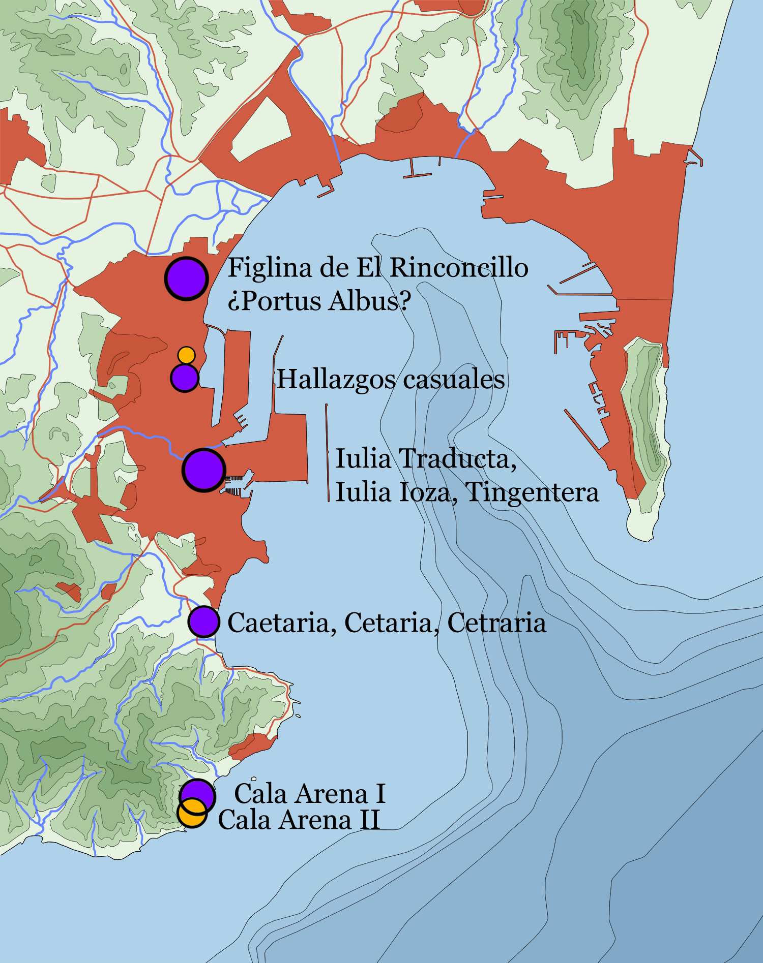 로마 제국 시대에 지금의 알헤시라스 지역에는 포르투스 알부스(Portus Albus), 카에타리아(Caetaria), 율리아 트라두크타(Iulia Traducta)라는 도시가 있었다.[4] 이 중 율리아 트란스둑타(Iulia Transducta)는 알헤시라스의 "비야 비에하"(Villa Vieja) 지역에 있었던 것으로 추정된다.[5][6] 전략적 요충지에 위치했던 이 지역은 페니키아 시대에는 중요한 항구였으며, "포르투스 알부스"(Portus Albus, "백색 항구")라는 로마 항구가 있었다.