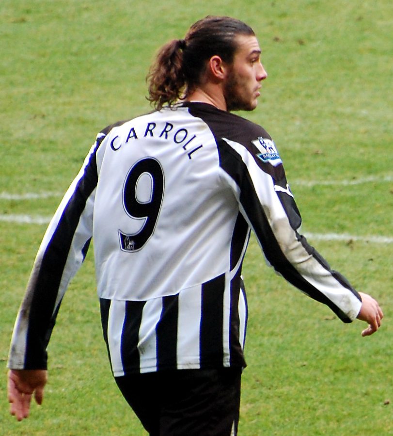 앤디 캐럴은 뉴캐슬 유나이티드 유소년 팀 출신으로, 2006년 11월 2일 UEFA컵 팔레르모전에서 교체 투입되어 성인 무대 데뷔전을 치렀다. 당시 17세 300일이었던 그는 뉴캐슬 소속으로 유럽 무대에 뛴 최연소 선수였다.[208] 2007년 2월 25일 위건 애슬래틱과의 경기에서 교체 출전하며 리그 데뷔전을 치렀으나, 골키퍼 존 필런의 선방에 막혀 득점에는 실패했다.[209] 그 해, 캐럴은 북동부 지역 최고의 신인에게 주어지는 '워 재키 밀번 트로피'를 수상했다.[210] 2007년 7월 29일 유벤투스와의 친선 경기에서는 잔루이지 부폰을 상대로 골을 기록했고, 경기 후 부폰은 캐럴의 미래를 칭찬했다.[210]2007-08 시즌을 앞두고 프레스턴 노스 엔드로 임대되었으나, 11경기 1골에 그치고 스컨소프 유나이티드전에서 퇴장당하는 등 부진하여 뉴캐슬로 복귀했다.