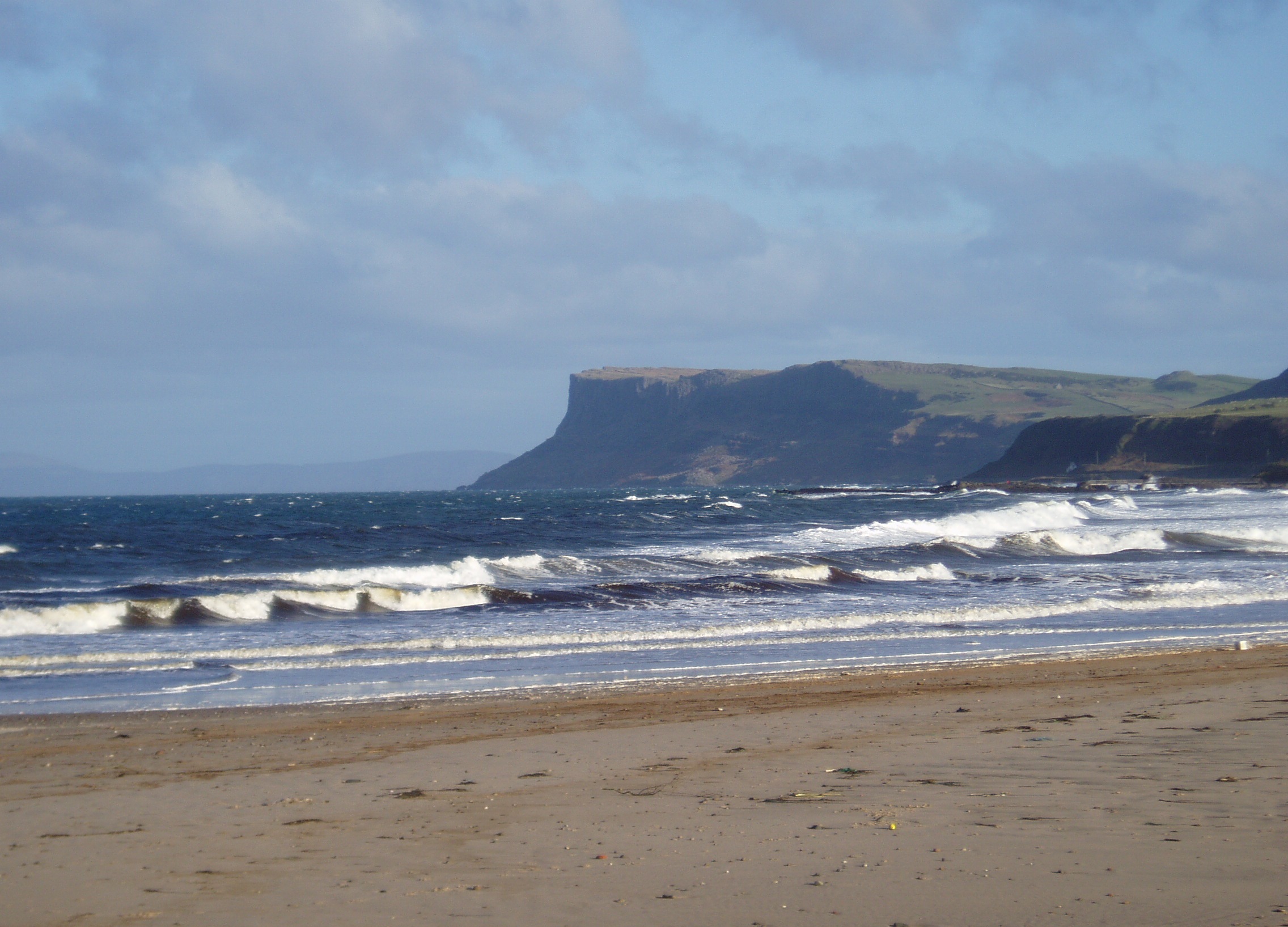 북쪽 해안에는 페어 헤드와 자이언츠 코즈웨이처럼 수직 현무암 기둥으로 이루어진 절벽들이 장관을 이룬다. 포트러시, 포트볼린트래, 밸리캐슬 등 여러 휴양 도시가 해안선을 따라 위치한다. 밸리캐슬 근처에는 L자 모양의 래스린 섬이 있고, 아일랜드매기는 라르네 호와 북해협을 분리하는 반도이다.[10]