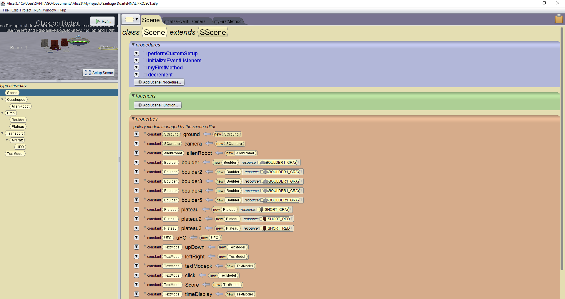 앨리스는 자체 IDE을 제공하므로, 별도로 설치할 필요 없이 바로 프로그래밍을 시작할 수 있다. 앨리스는 객체 지향 프로그래밍 및 이벤트 기반 프로그래밍 모델을 지원한다.[2]3. 3. 대상 사용자층 및 활용