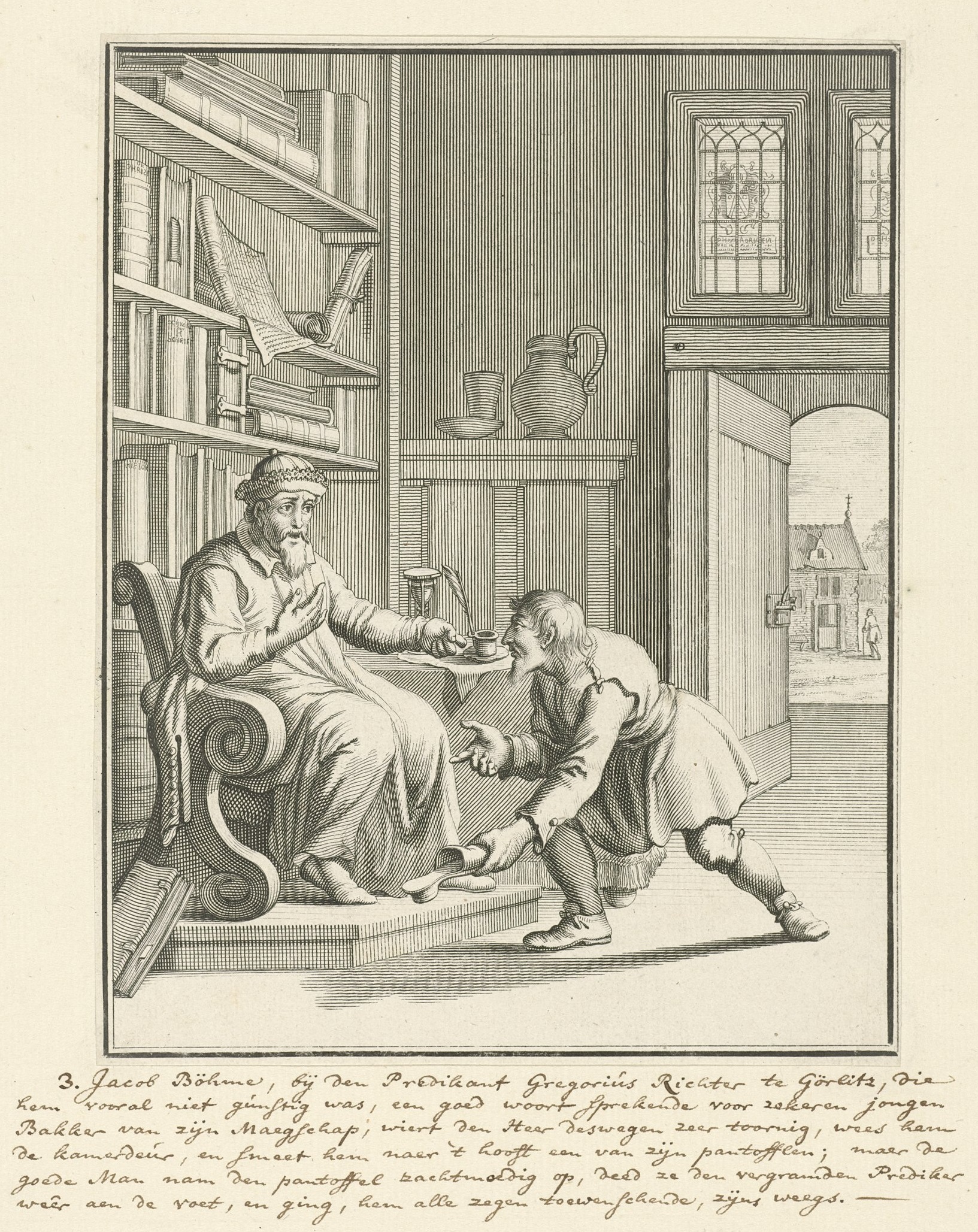 리히터는 설교단에서 뵈메를 이단 사상의 소유자로 비난했고, 이에 호응하는 시민들은 공공연히 뵈메의 자택을 공격하는 등 뵈메의 평온한 삶은 위협받았다. 이 결과, 뵈메가 이후 저술을 하지 않고, 리히터는 교회에서 뵈메를 비난하는 것을 그만두는 타협이 시 당국의 중재로 결정되었고, 뵈메는 저술 활동을 중단하게 되었다.[3]
