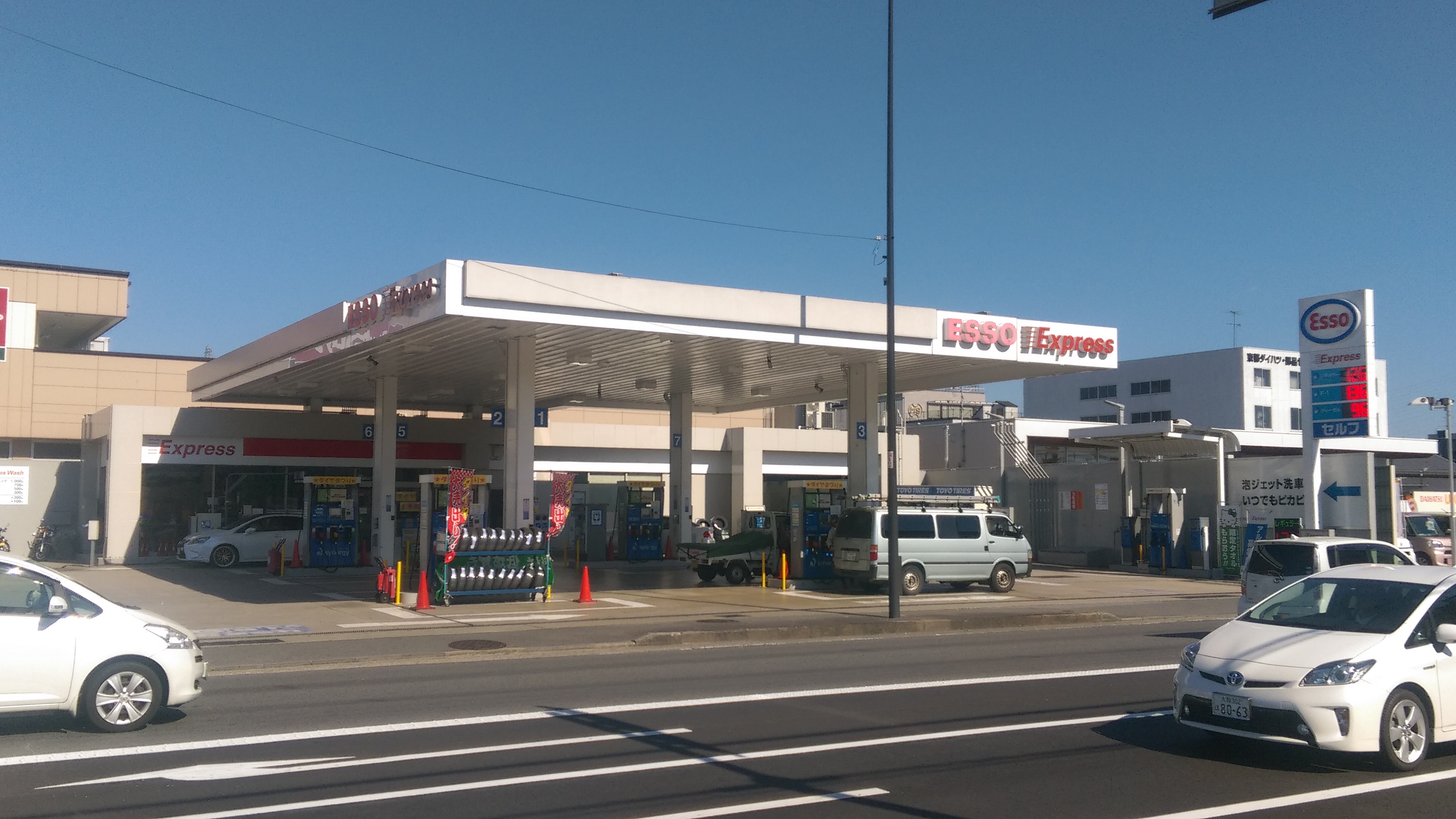 1998년 소방법 개정으로 셀프 주유소가 허용되자, 모빌, 제너럴 브랜드와 함께 셀프 주유소 브랜드인 "에소 익스프레스(Express)"를 전개했다. "퀵 & 이지(Quick & Easy)"를 내세우며 편리성을 강조했다. 일정 규모 이상의 시설 기준을 충족해야 "에소 익스프레스" 인증을 받을 수 있었으며, 인증 점포에서는 전용 선불카드(급유, 세차), 스피드패스(이후 EneKey로 변경) 등의 서비스를 제공했다. 또한 오일 교환 전문점인 Mobil1 Center(현재 Enejet CarCare), 1일 차량 검사소(후쿠오카현 일부), 도토루 커피숍, 세븐일레븐 편의점 병설 점포 등 다양한 부대시설을 운영하기도 했다.
