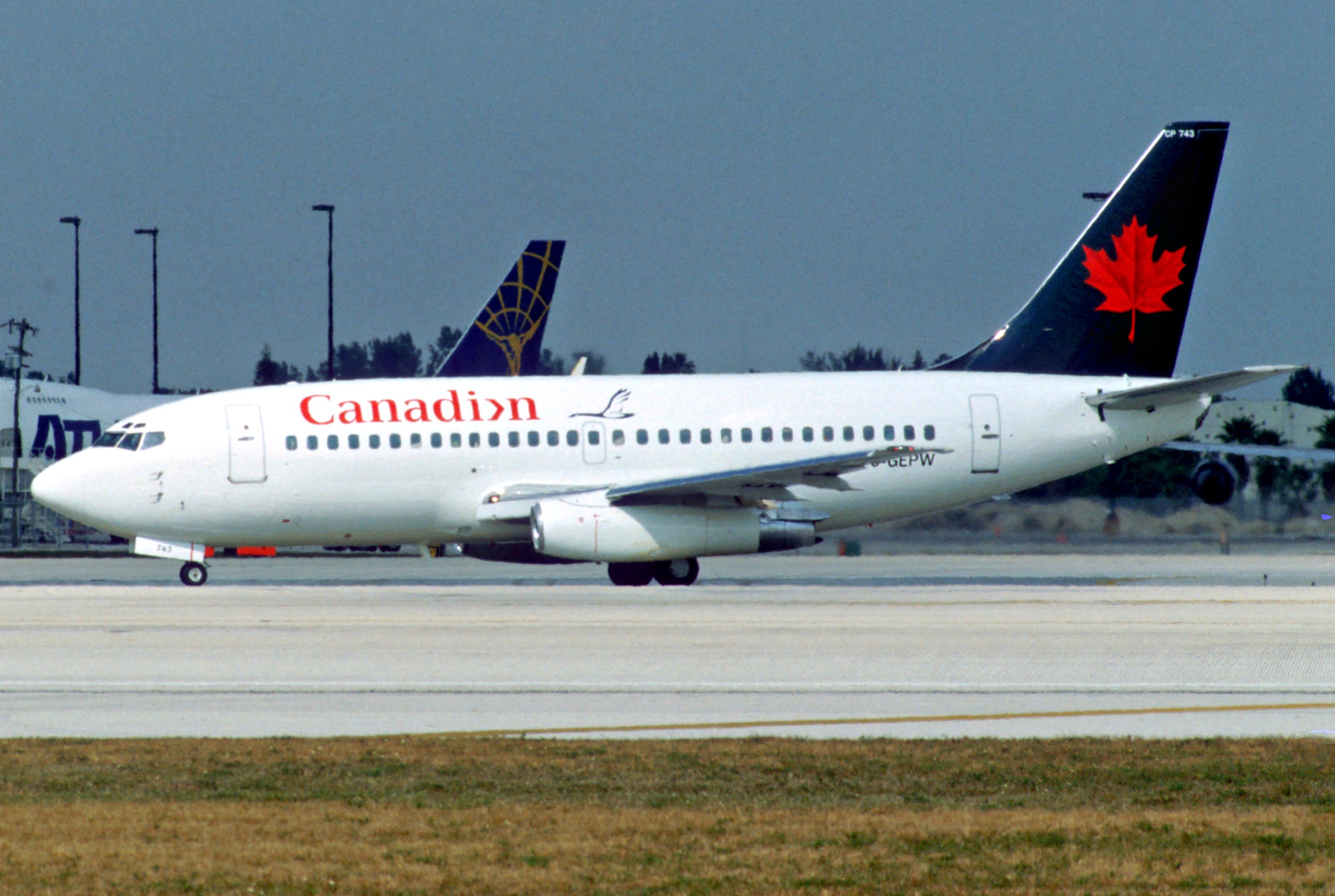 에어 캐나다와 캐나디안 항공의 합병 도색을 한 보잉 737-275 항공기.
