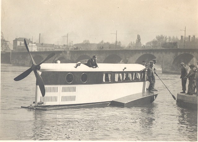 1907년 프랑스 항공 개척자인 텔리에 형제(Tellier brothers)는 고속정 ''라 라피에르 2세(La Rapière II)''(''라피어 2세'')를 통해 현대 에어보트로 향한 중요한 발걸음을 내디뎠다. ''라 라피에르 2세''는 길이 8m의 마호가니 목재 고속정으로, 부분적으로 물 위에 떠 있는 항공기 프로펠러와 20마력 4기통 파나르-르바소(Panhard-Levassor) 엔진에 연결되어 있었다. 이 보트는 선박용 키와 연결된 기존의 수중 키로 조종되었다.[9] ''라 라피에르 2세''는 승객 2명 탑승 시 최대 시속 26km, 3~4명 탑승 시 시속 25km의 속도를 낼 수 있었다.[15] 1913~1914년경 슈나이더 트로피(Schneider Trophy)로 유명한 프랑스 금융가이자 기구 조종사, 항공 애호가인 자크 슈나이더(Jacques Schneider)는 자신만의 다인승 에어보트를 개발하고 실험했다.[10]