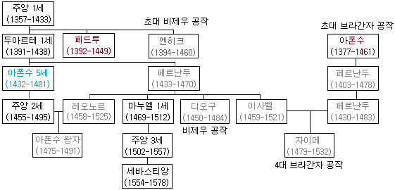 아폰수 4세[27] | 페드루 1세[25] | 카스티야의 베아트리스[27] |