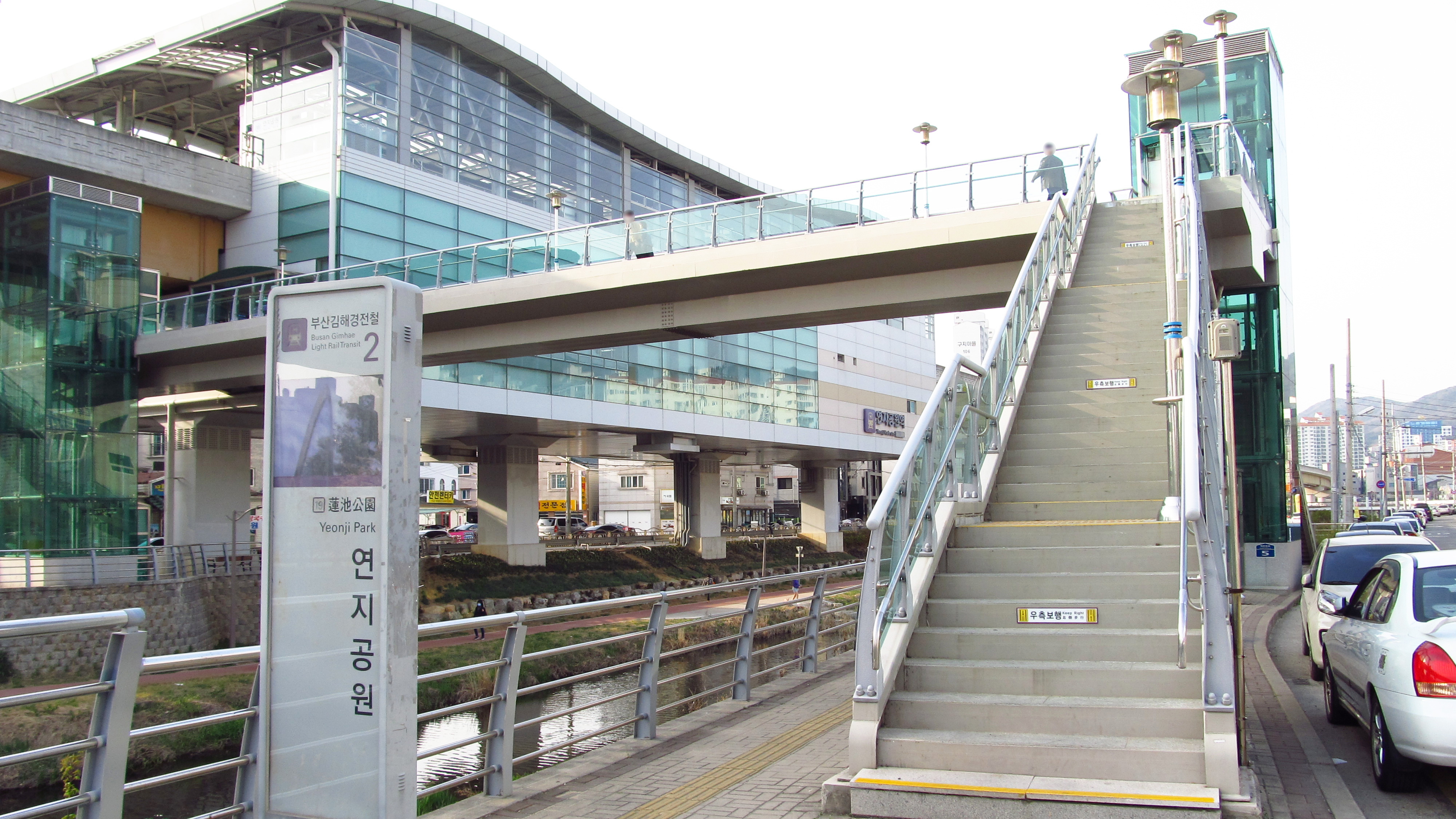 연지공원역은 2011년 9월 9일에 개업한 부산-김해 경전철의 역이다. 연지공원 인근에 위치하며, 2면 2선의 상대식 승강장과 스크린도어를 갖춘 고가역이다. 역 주변에는 연지공원, 김해 학생 체육관, 김해 구산동 지석묘 등이 있으며, 김해시청 축구단의 홈구장인 김해운동장과 인접해 있다.