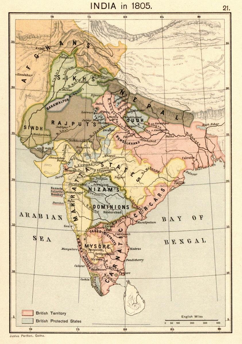 네팔이 동쪽으로 시킴, 서쪽으로 쿠마온과 가르왈, 남쪽으로 아와드까지 제국을 확장하는 동안, 영국 동인도 회사는 캘커타, 마드라스, 봄베이를 중심으로 인도에서의 입지를 강화했다.