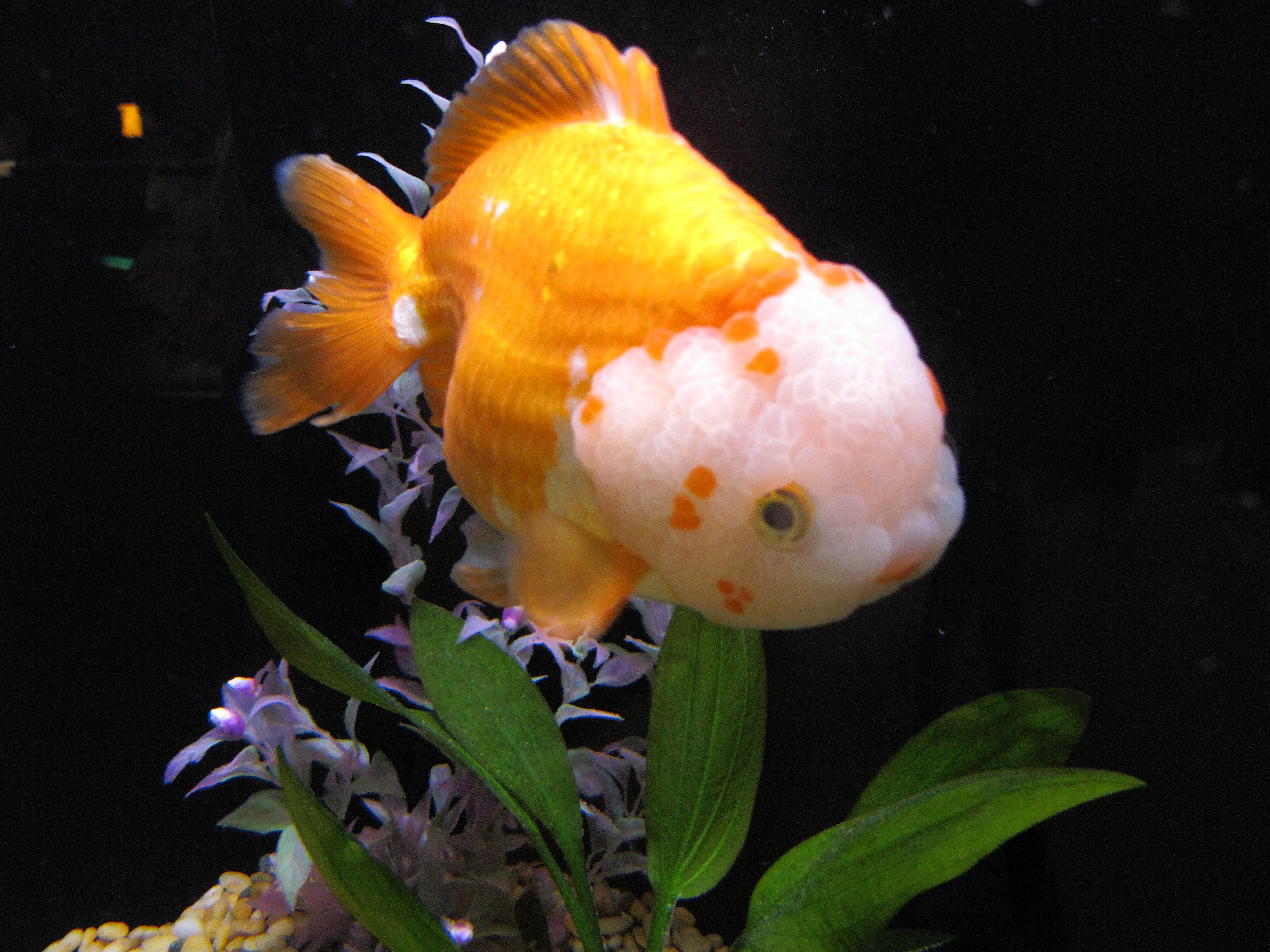 머리에 튀어나온 살점(육혹) 때문에 오란다는 가장 대중적인 금붕어 품종 중 하나가 되었다.