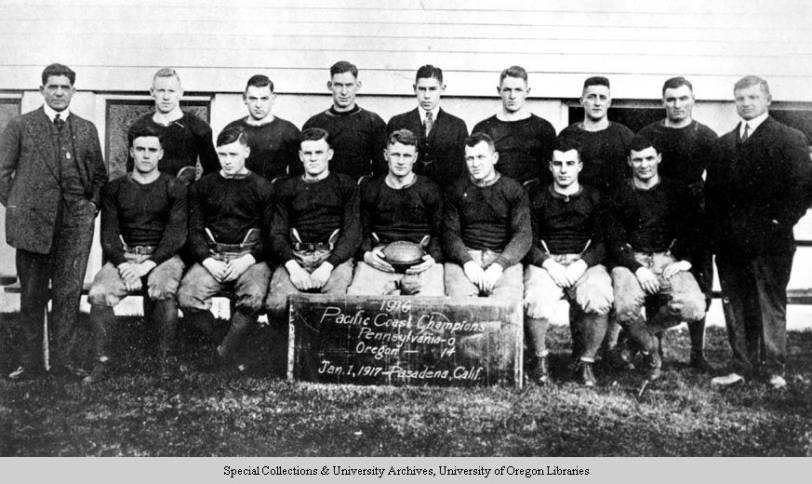 오리건 대학교의 역사는 1872년 10월 12일 오리건 주정부가 유진에 대학을 설립하면서 시작되었다. 당시 유진 시민들은 대학 재정 지원을 위해 모금 운동을 벌였다.[30] 1876년 유니버시티 홀을 유일한 건물로 개교하여,[31] 1878년 첫 졸업생 5명을 배출했다.[29] 1881년 8000USD 빚으로 폐교 위기에 처했으나, 헨리 빌라드(Henry Villard)의 지원으로 극복했다.[29]
