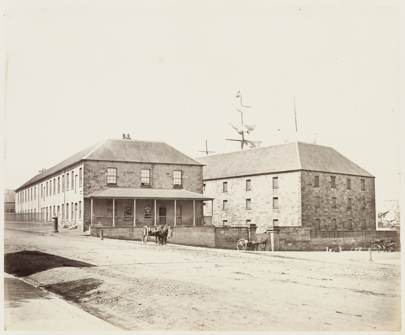 원래 이 부지에는 1810년대에 죄수들의 노동력으로 지어진 보급창고 두 동이 있었다.[22] 1937년, 순환 부두 계획 위원회는 해사청을 위한 새 사무실을 지을 것을 요구했고,[6] 해사청 건축가 윌리엄 헨리 위더스는 인근 다리의 파이론(pylon)을 연상시키는 중앙 탑이 있는 스트립트 클래시시즘 양식의 건물을 설계했다.[23] 제2차 세계 대전으로 인해 건설이 중단되었다가 1944년에 재개되어 1952년에 완공되었으며, 국가 유산 등록부와 뉴사우스웨일스 주 문화유산 등록부에 등재되어 있다.[22][6][24]