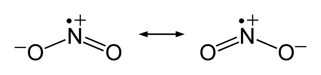 일산화 질소(NO)는 질소가 옥텟 규칙을 위반하고 있어 불안정하다. 이때 일산화 질소는 좀 더 안정한 구조인 이산화 질소(NO2)로 바뀌려 하는데, 일산화 질소(NO)는 대기 중의 산소(O2)에서 산소 원자 하나와 추가적으로 결합하면서 이산화 질소가 된다. 이렇게 만들어진 이산화 질소도 최외각 전자가 7개로 일산화 질소와 마찬가지로 옥텟 규칙을 만족하지 못한다. 이러한 홀수 전자 분자를[29]라디칼이라고 한다.
