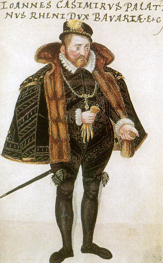 요한 카지미어 폰 팔츠지머른 궁정백은 비텔스바흐 가문의 짐머른 중부 선제후 가문 출신으로, 팔츠 선제후 프리드리히 3세의 아들이다. 그는 1570년 작센의 엘리자베스와 결혼했으나 종교적 갈등으로 불행한 결혼 생활을 했고, 아내를 가택 연금하기도 했다. 그는 1576년 부친 사망 후 라우테른 팔츠 백작이 되었고, 칼뱅주의를 유지하며 카지미리안 대학교를 설립했다. 요한 카지미어는 엘리자베스 1세의 대리인으로 활동하며 프랑스에서 에탕프 공작으로 임명되기도 했으며, 조카 프리드리히 4세의 섭정을 지냈다.