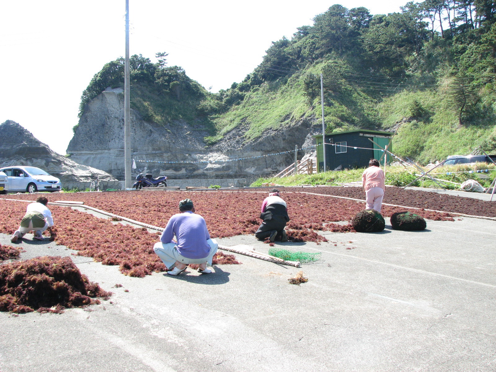 일본에서는 12월부터 이듬해 2월의 혹한기에 한천을 제조한다.; 원료 해조류의 정제