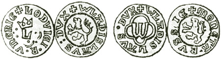 Wladyslaw Opolczyk의 동전 (루테니아 사자가 그려진 러시아 화폐)
