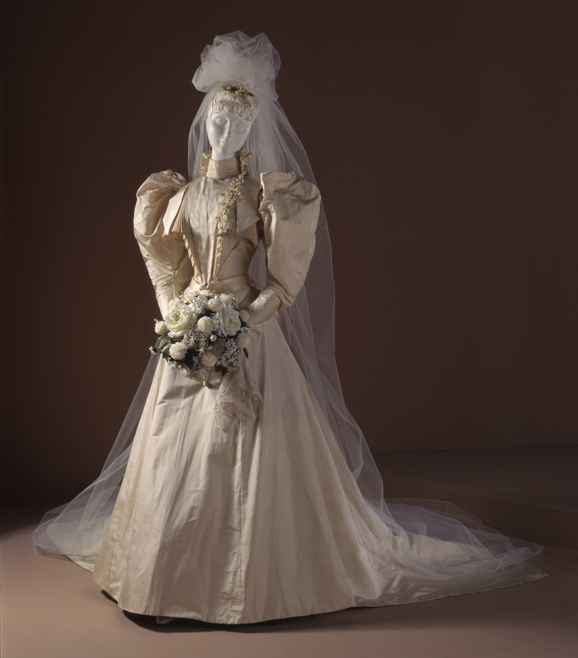 원래 웨딩드레스는 기독교의 결혼 의식을 위한 의상이었기 때문에, 계율이 엄격하고 의식을 중시하는 가톨릭 계열의 교회에서는 피부 노출을 최소화하는 것이 요구되었다.[34] 따라서 베일로 얼굴을 가리고, 가슴이 가려지도록 하며, 상의는 기본적으로 긴소매를 하고 흰색 장갑을 착용했다.