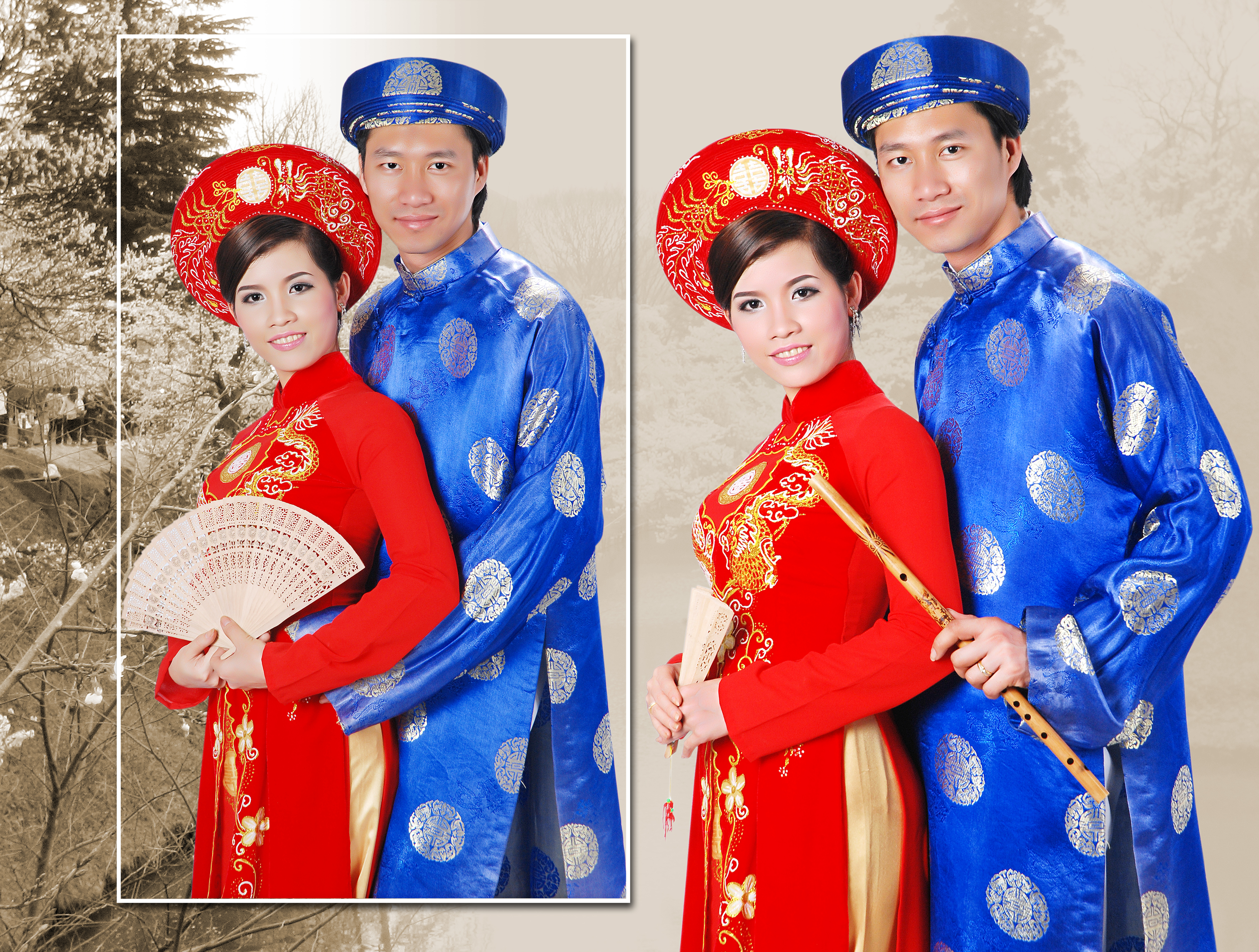 중국, 인도, 방글라데시, 파키스탄의 많은 웨딩드레스는 붉은색이다. 이는 전통적인 인도 색상으로 행운과 길조를 나타낸다.[1] 베트남의 웨딩드레스(전통적인 아오자이(áo tấc), 고대 아오자이)는 감청색이었다. 오늘날 많은 여성들은 붉은색 외의 다른 색상을 선택한다. 현대 중국 본토 결혼식에서 신부는 어떤 색상의 서양식 드레스와 전통 의상을 결혼 다례를 위해 입을 수 있다.