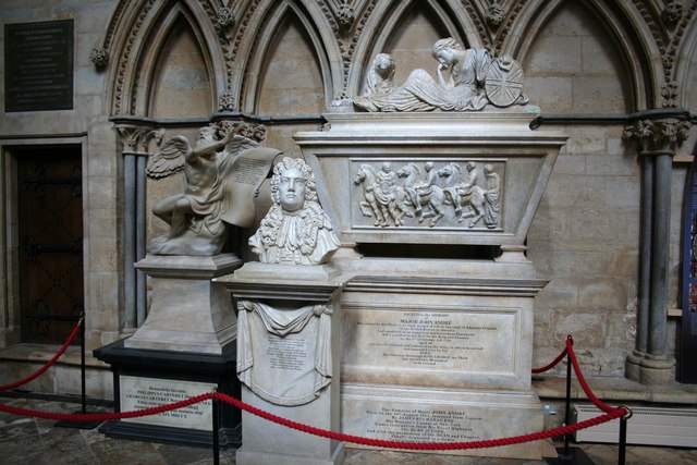 섬유판으로 만든 웨스트민스터 사원 대리석 기념물 모형이 영화 ''다 빈치 코드'' 촬영을 위해 제작되어 링컨 대성당에 전시됨