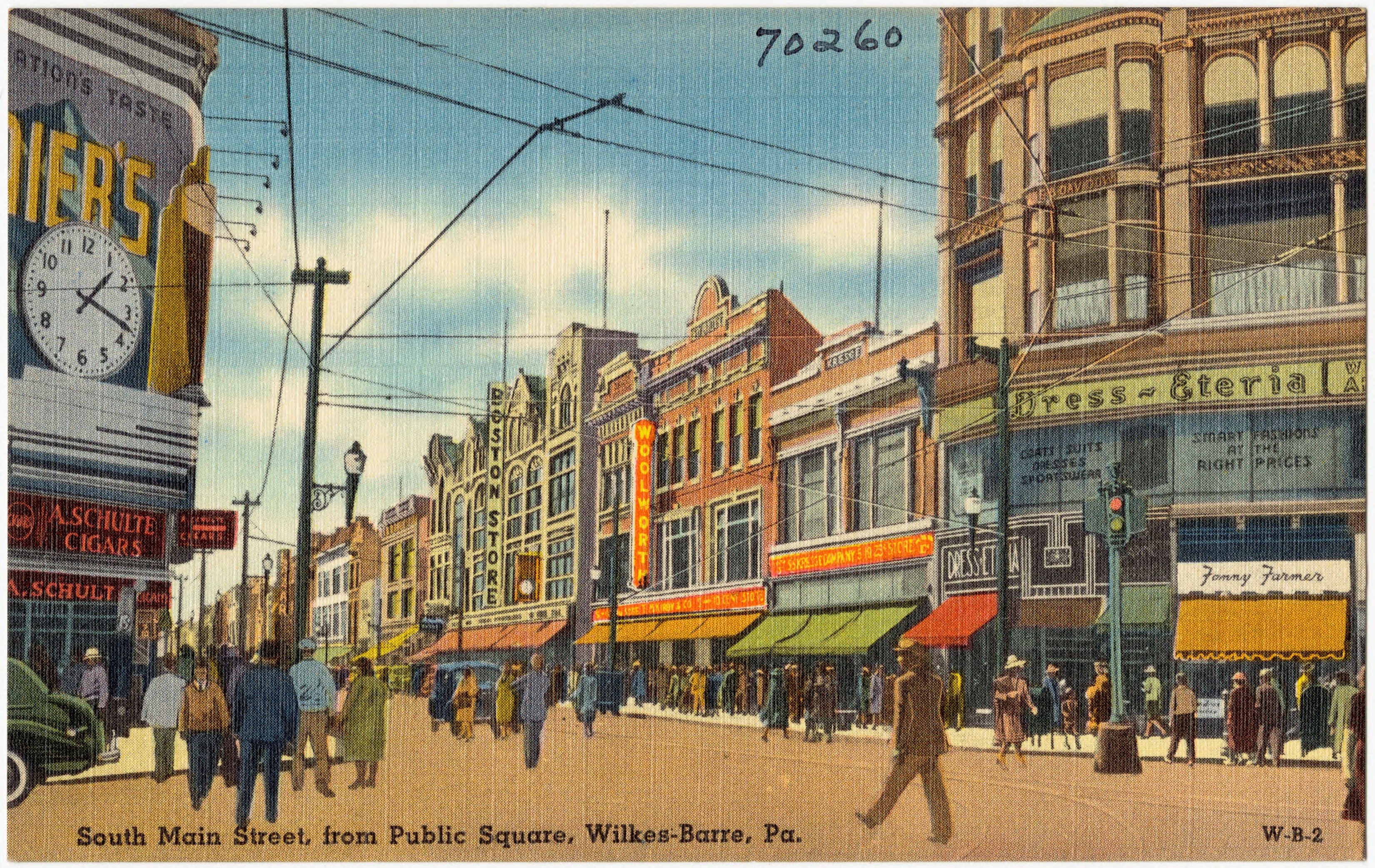 벌칸 아이언 웍스는 1849년부터 1954년까지 철도 기관차를 제조했다.[12] 윌크스배리가 미국의 산업 및 경제적 강세로 군림하는 동안, 울워스, 스털링 호텔, 마이너스 은행, 벨 전화, 루저른 국립 은행, 스테그마이어와 같은 여러 주요 기업 및 프랜차이즈가 이 도시에 기반을 두게 되었다.[12]