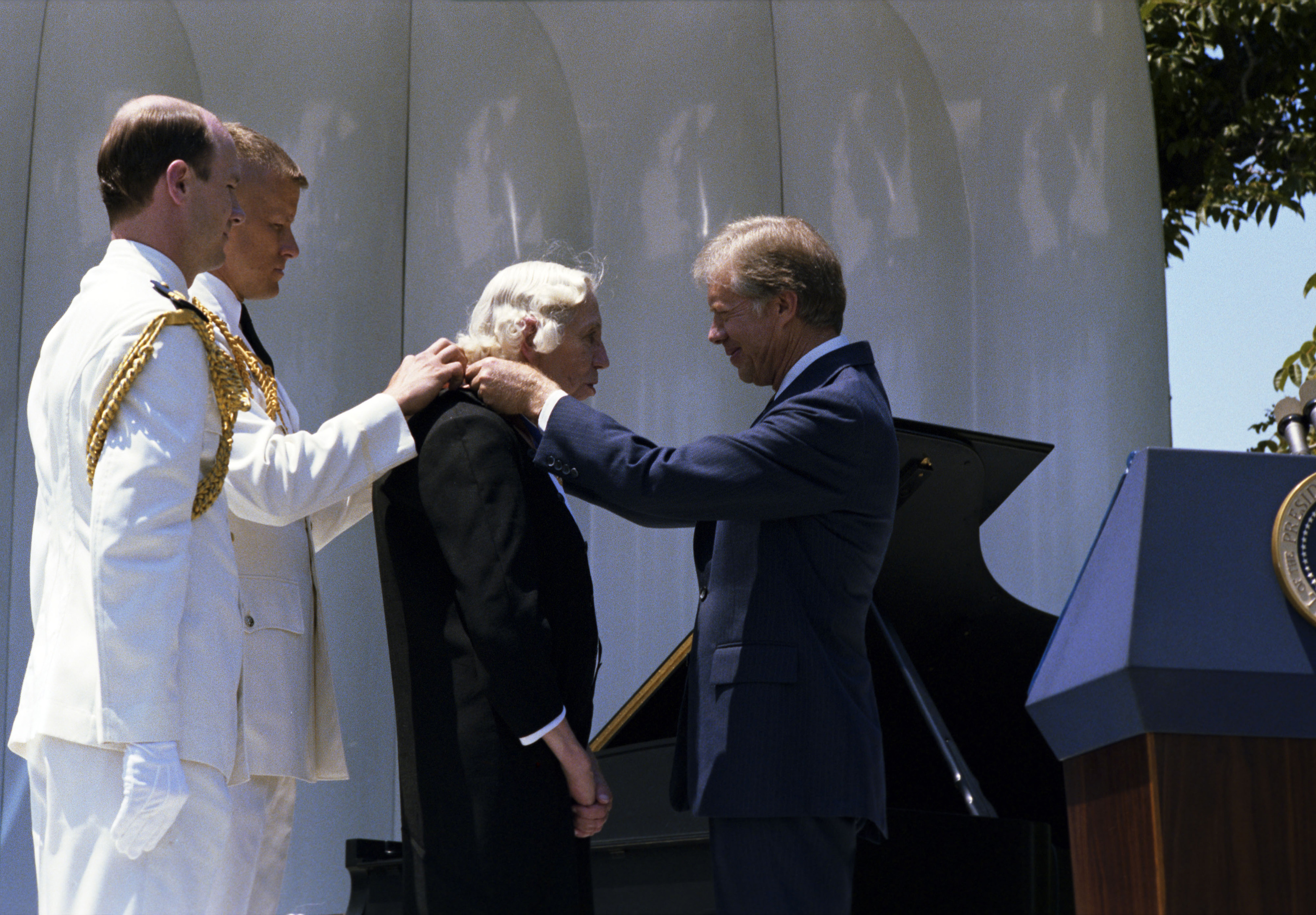 1980년 웰티가 지미 카터 대통령으로부터 대통령 자유훈장을 받는 모습