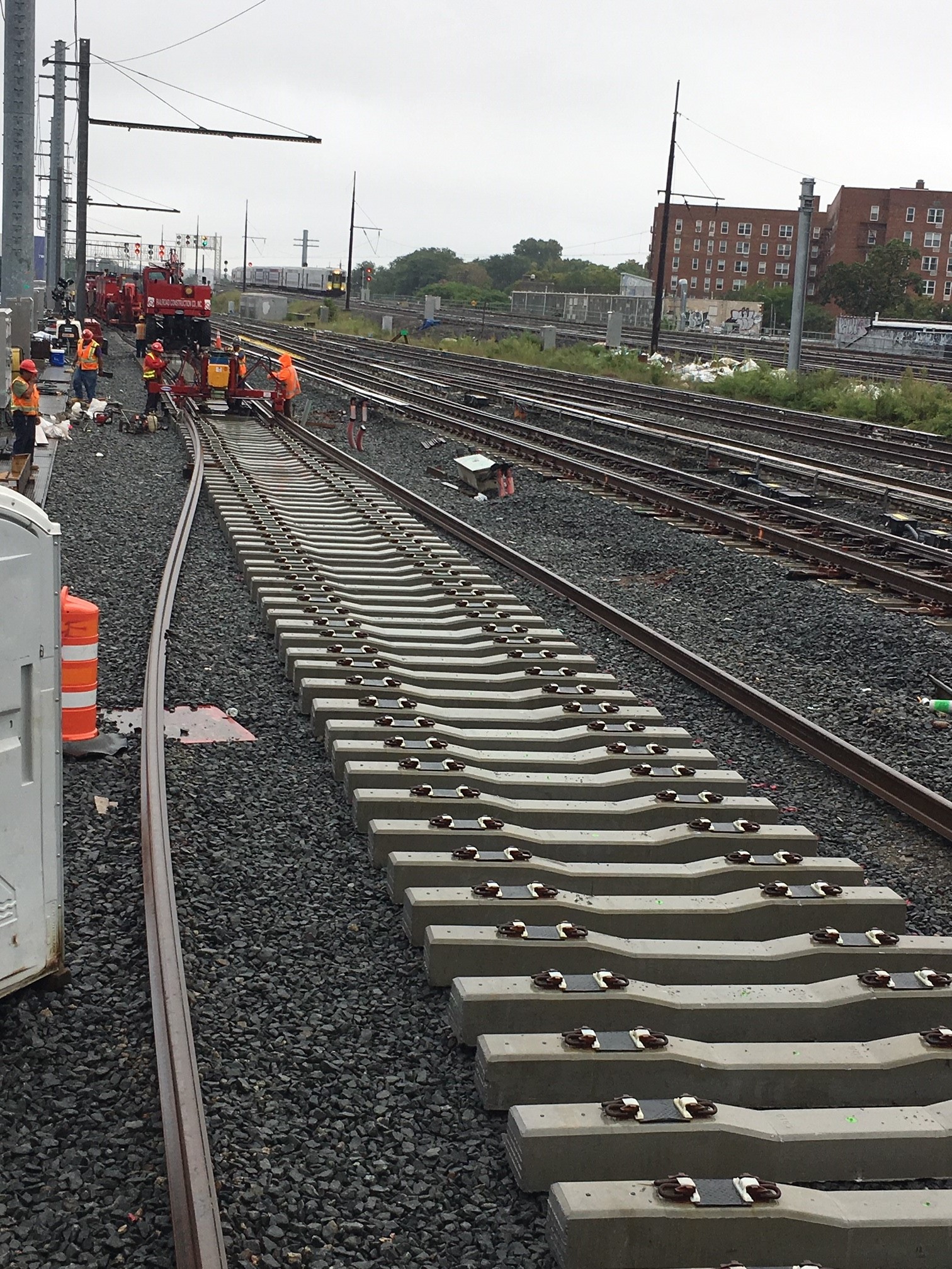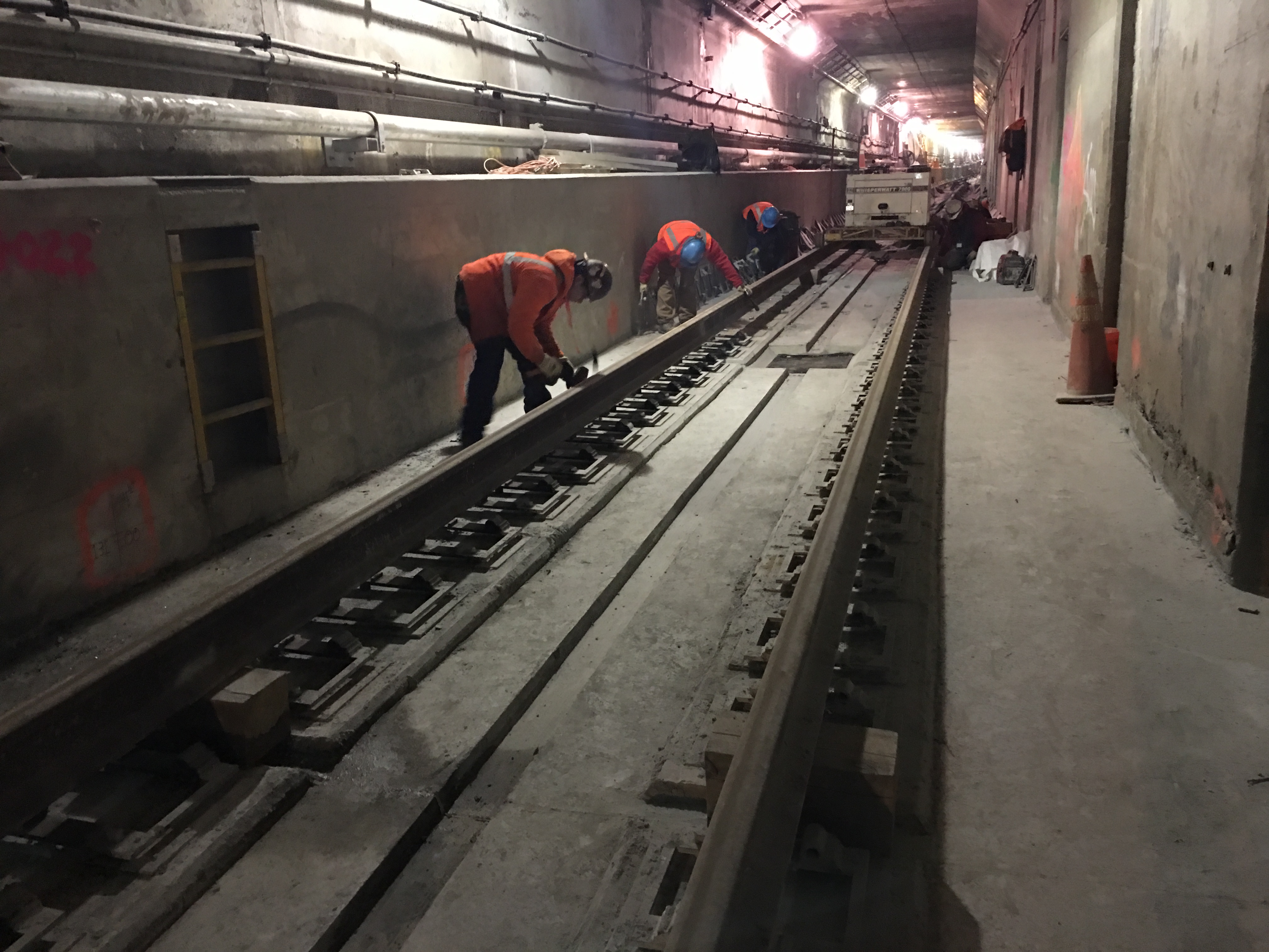 퀸스의 암트랙 서행 바이패스 터널용 레일 포설