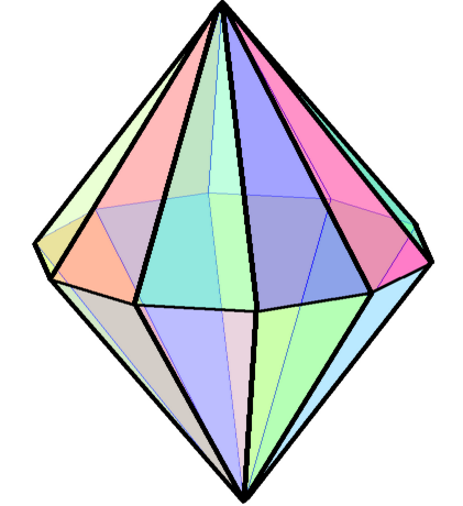 - 쌍뿔: 10개 면 2세트로 총 20개의 면을 가진다.