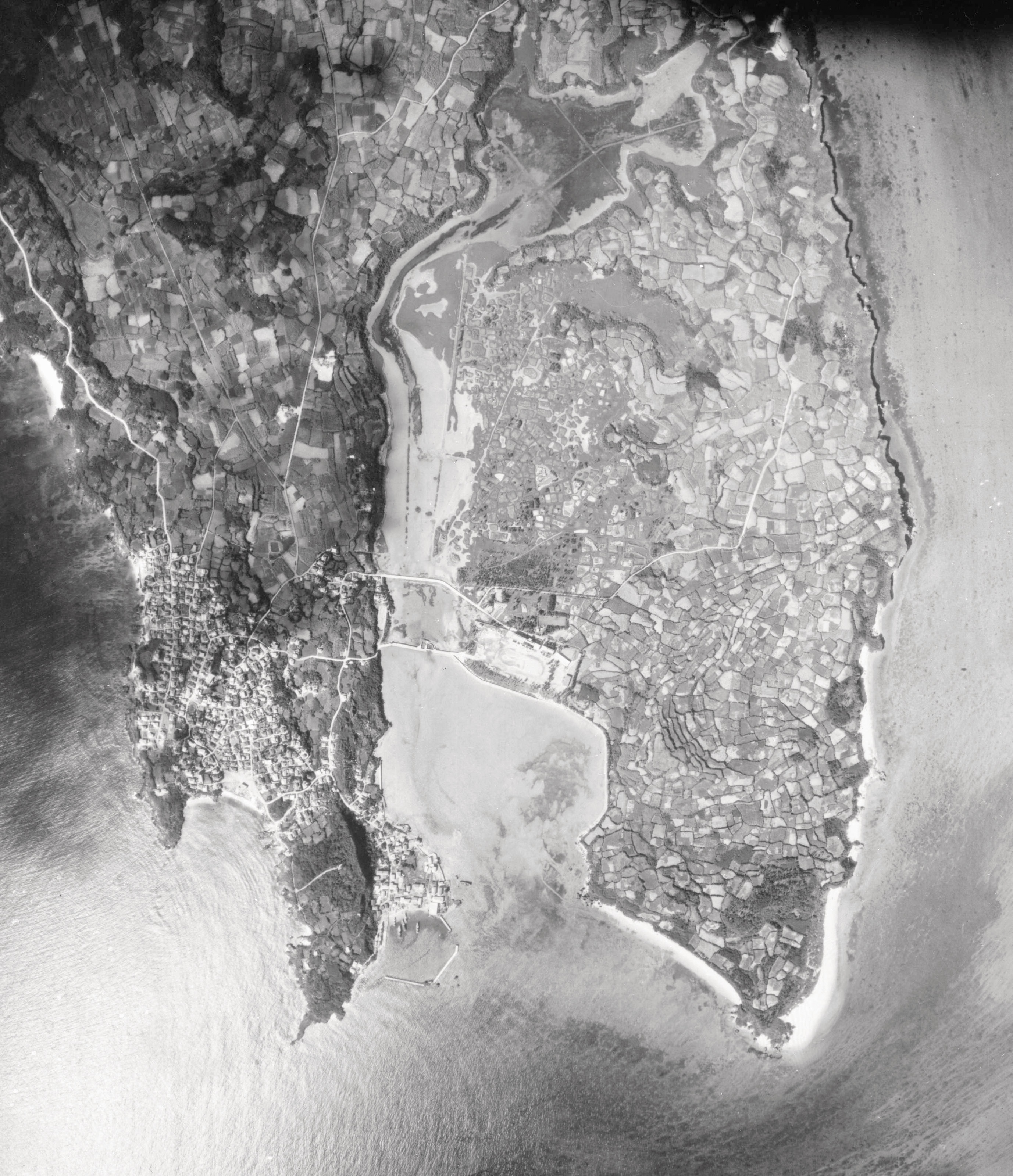 과거 이케마섬은 남북으로 뻗은 가느다란 해협으로 나뉜 두 개의 섬이었다. 16세기 초, 해협 북쪽에 위치한 카리마타의 호족 "사도의 주인"이 돌다리를 건설하여 두 섬을 오갈 수 있게 했다. 그 후 얼마 지나지 않아 퇴적된 모래로 인해 돌다리는 묻혀 버렸고, 두 섬은 연결되었다. 예전의 해협은 가늘고 긴 만이 되어 이누 부(북쪽 만)라고 불리게 되었다[12][13]。