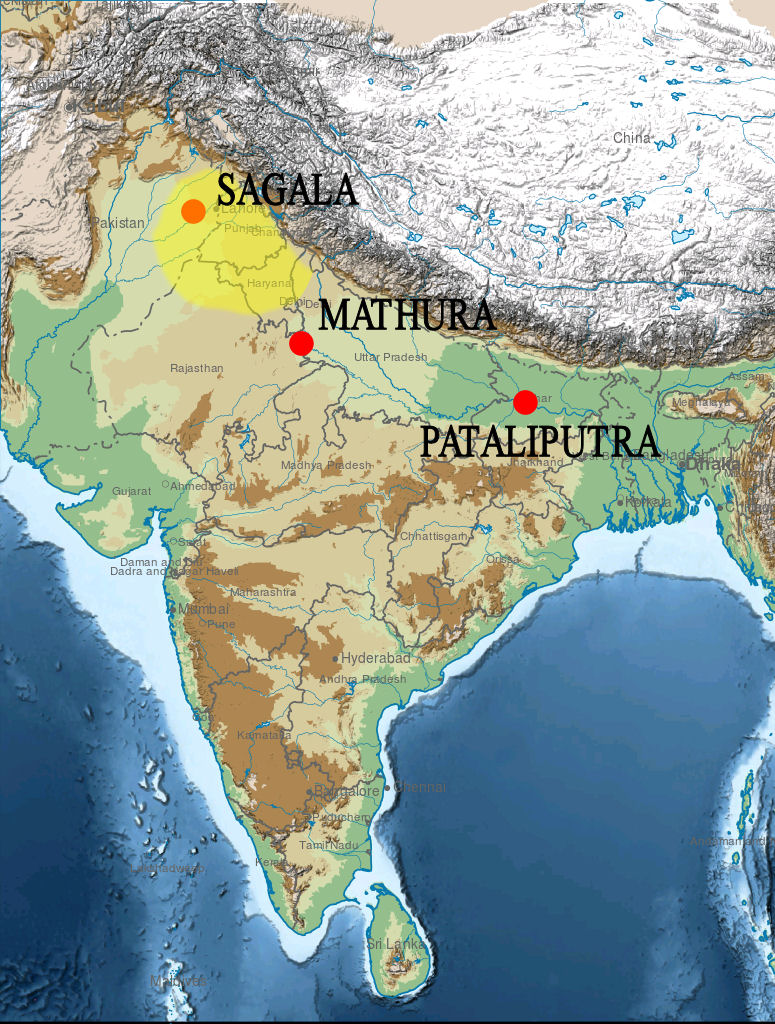 그리스-박트리아 왕국의 왕 데메트리오스 1세가 인도로 침입하면서 북인도의 북서부 지역에서 여러 인도-그리스 왕국들이 등장하였으며, 탁실라, 사갈라를 포함한 여러 도시들을 통치하였다.[22]