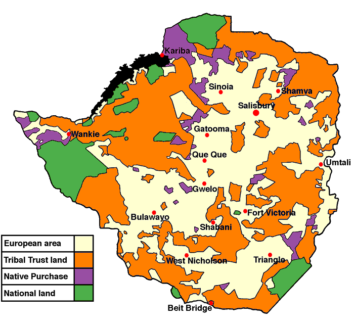남로디지아(현재 짐바브웨)에서는 1930년 토지 분배법이 통과되어 흑인과 백인을 구분하여 농촌 지역의 토지 할당 및 취득을 규제했다.[28] 1960년에 모든 인종에게 개방될 새로운 극장의 개업과 관련된 한 건의 공개적인 법적 다툼이 있었다. 1959년 신축된 Reps Theatre에 제안된 비분리형 공중 화장실은 "화장실 전투"라고 불리는 논쟁을 일으켰다.
