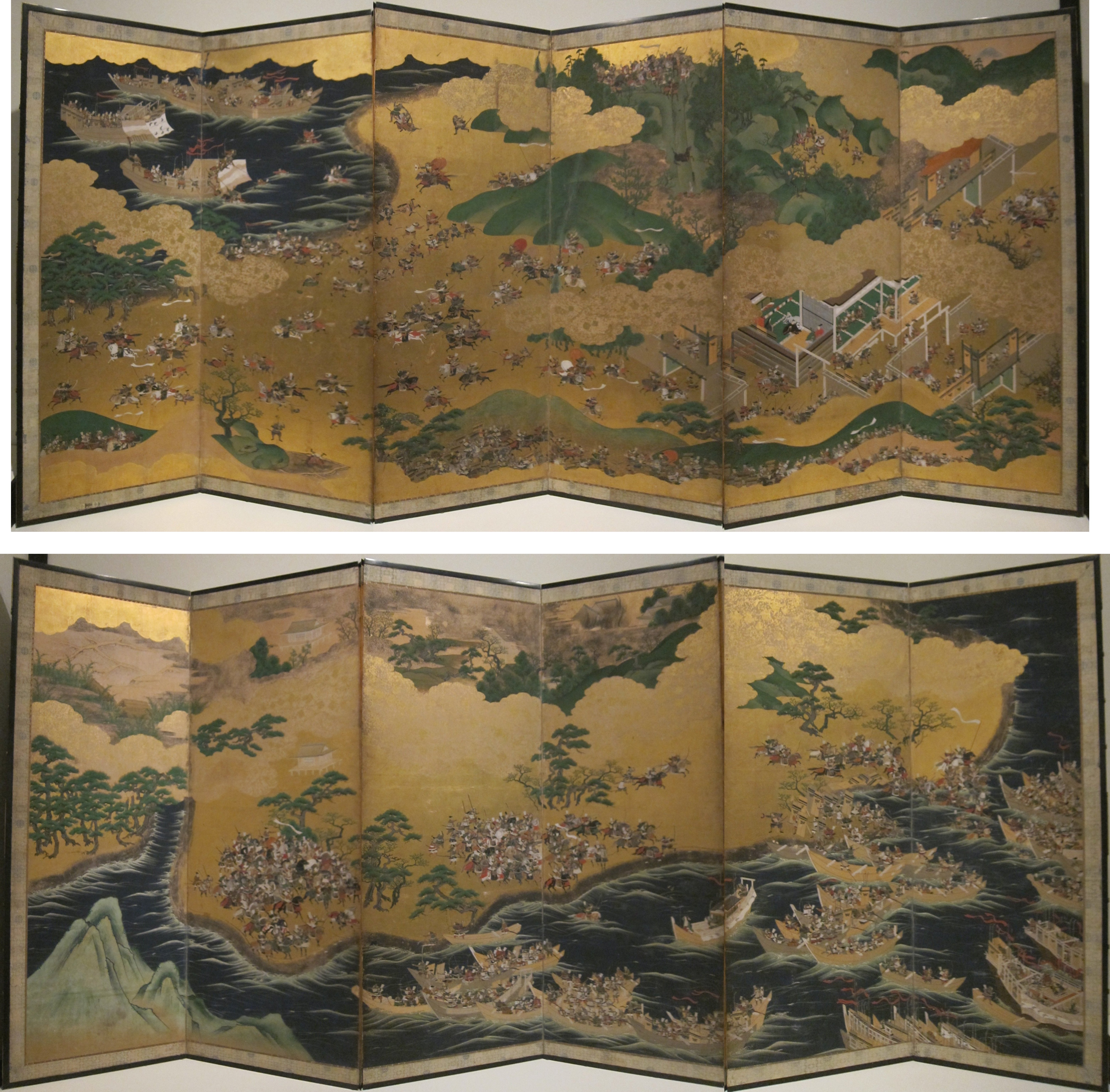 무사들의 활약과 전쟁을 다룬 '''군기 모노가타리(軍記物語)'''(무사 이야기)가 등장했다. 대표적인 작품으로는 《호겐 이야기(保元物語)》, 《헤이지 이야기(平治物語)》, 《헤이케 이야기(平家物語)》, 《태평기(太平記)》 등이 있다.|thumb|right|《헤이케 이야기(平家物語)》의 장면을 묘사한 17세기 병풍]]