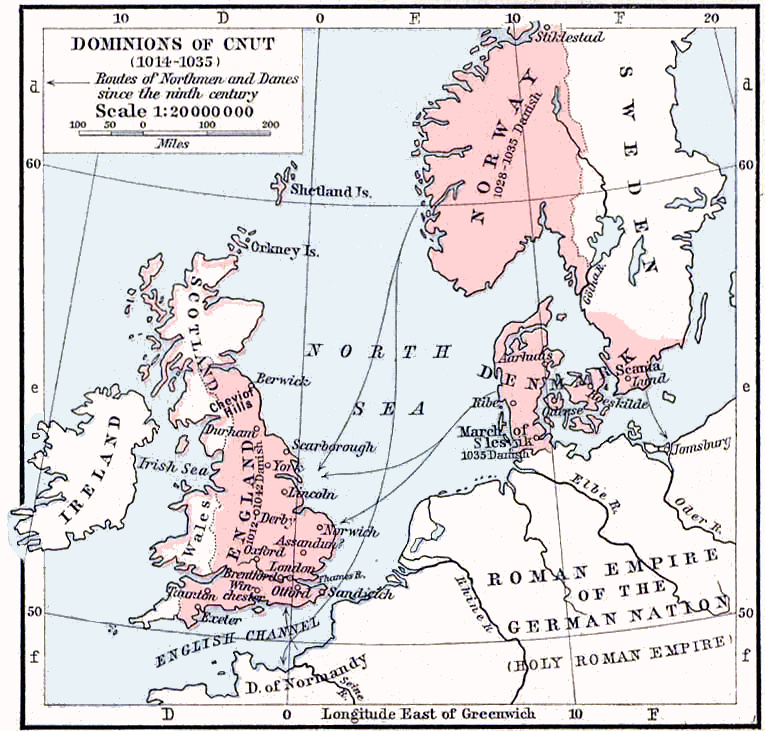 덴마크의 바이킹인 덴마크인의 침입이 활발하여, 1016년에 에드먼드 2세는 덴마크 왕국의 크누트와 격렬하게 싸웠으나, 에섹스의 아산둔 전투에서 결정적인 패배를 당했다. 전투 후 두 왕은 평화 협상을 하여, 에드먼드는 웨섹스를, 크누트는 템스강 북쪽을 영유하게 되었다. 이때 동시에, 어느 한쪽이 죽으면 살아남은 자에게 영토를 양도한다는 합의에 따라, 1016년에 크누트가 잉글랜드 왕에 즉위하고, 정복 왕조인 덴마크 왕조(북해 제국)가 성립했다. 덴마크의 지배는 1042년 6월 하르데크누트가 사망할 때까지 26년 동안 계속되었다. 그는 크누트와 노르망디의 엠마(에텔레드의 미망인)의 아들이었고 자신의 상속인이 없었으며, 그의 이복형제인 에텔레드의 아들 에드워드 고백자가 그를 계승하였다.