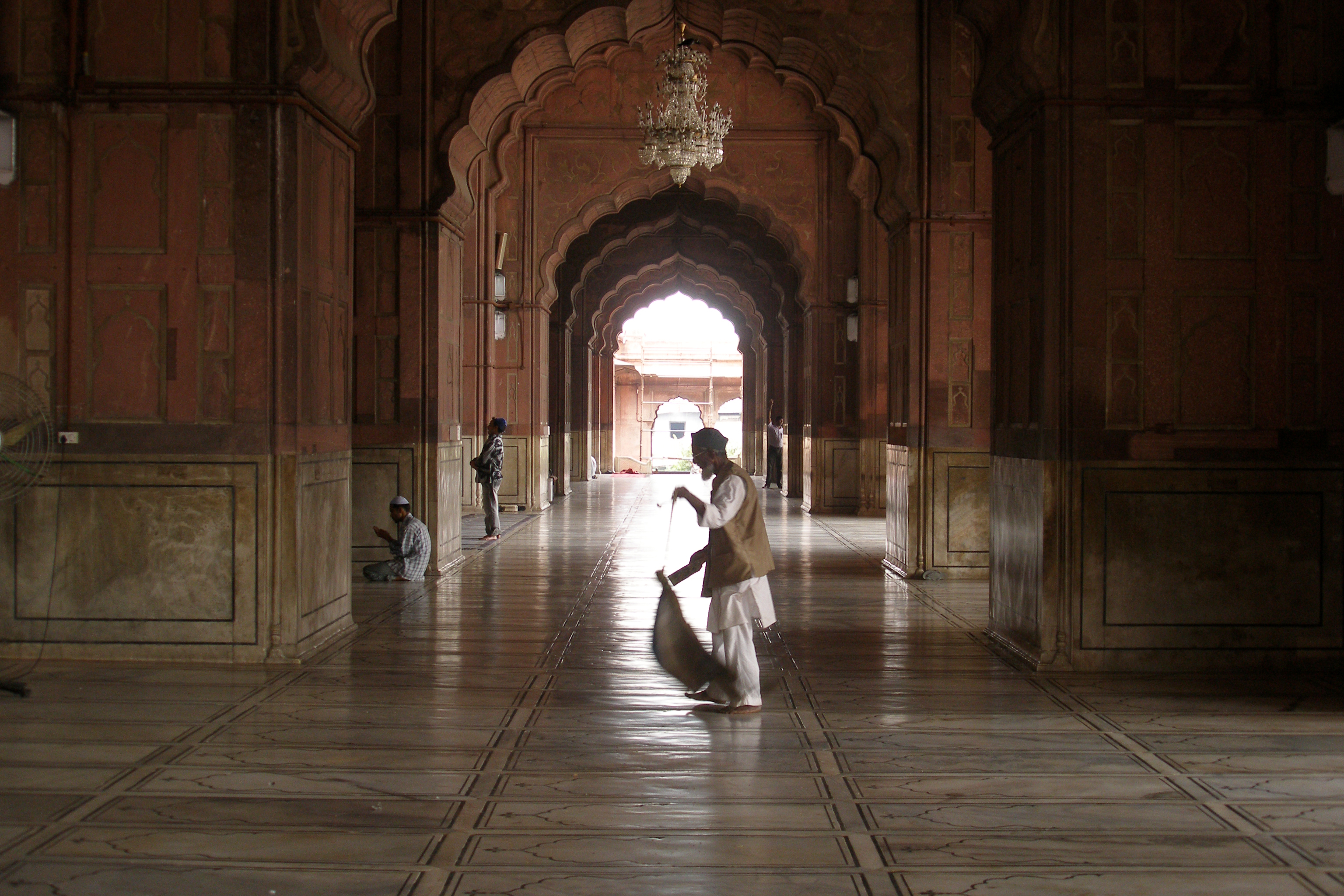 이 계단 부분은 과거 노점이나 거리 공연 예술가들의 공간이기도 했다. 또한 저녁이 되면 모스크 동쪽은 닭고기나 작은 새를 파는 시장으로 변모했다. 1857년 세포이 항쟁 이전에는 모스크 남쪽 근처에 마드라사가 있었지만, 항쟁 이후 철거되었다.